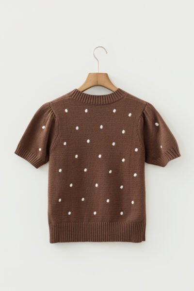 Chestnut Elegant Polka Dot Bubble Short Sleeve Sweater