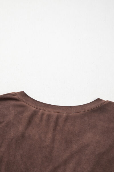 Chestnut Mineral Wash Criss Cross V Neck Casual T Shirt