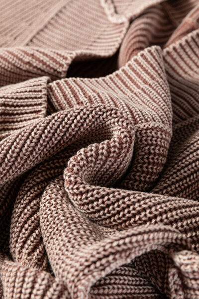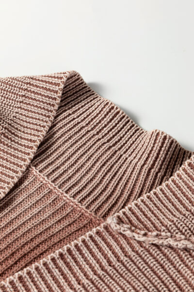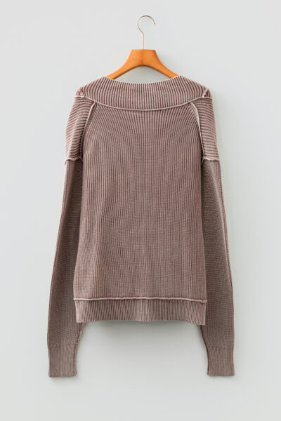 Chestnut Mineral Wash Exposed Seam Patchwork Knit Open Sweater Cardigan