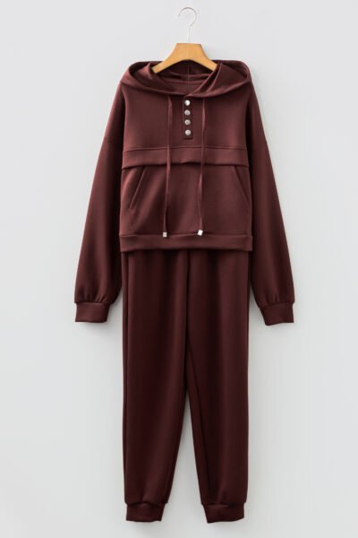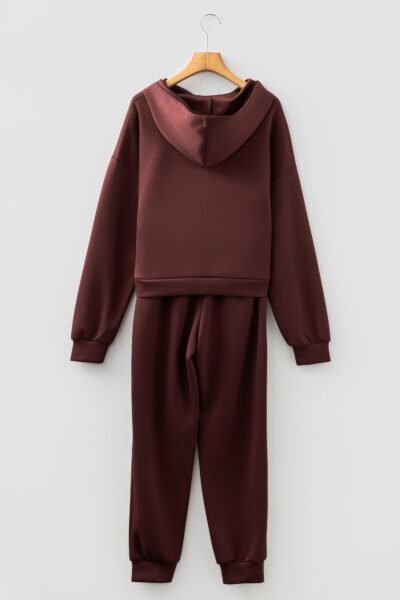Chicory Coffee Button Drawstring Cropped Hoodie Jogger 2pcs Set