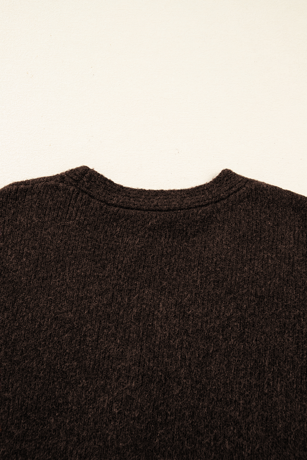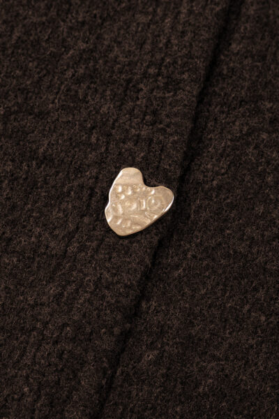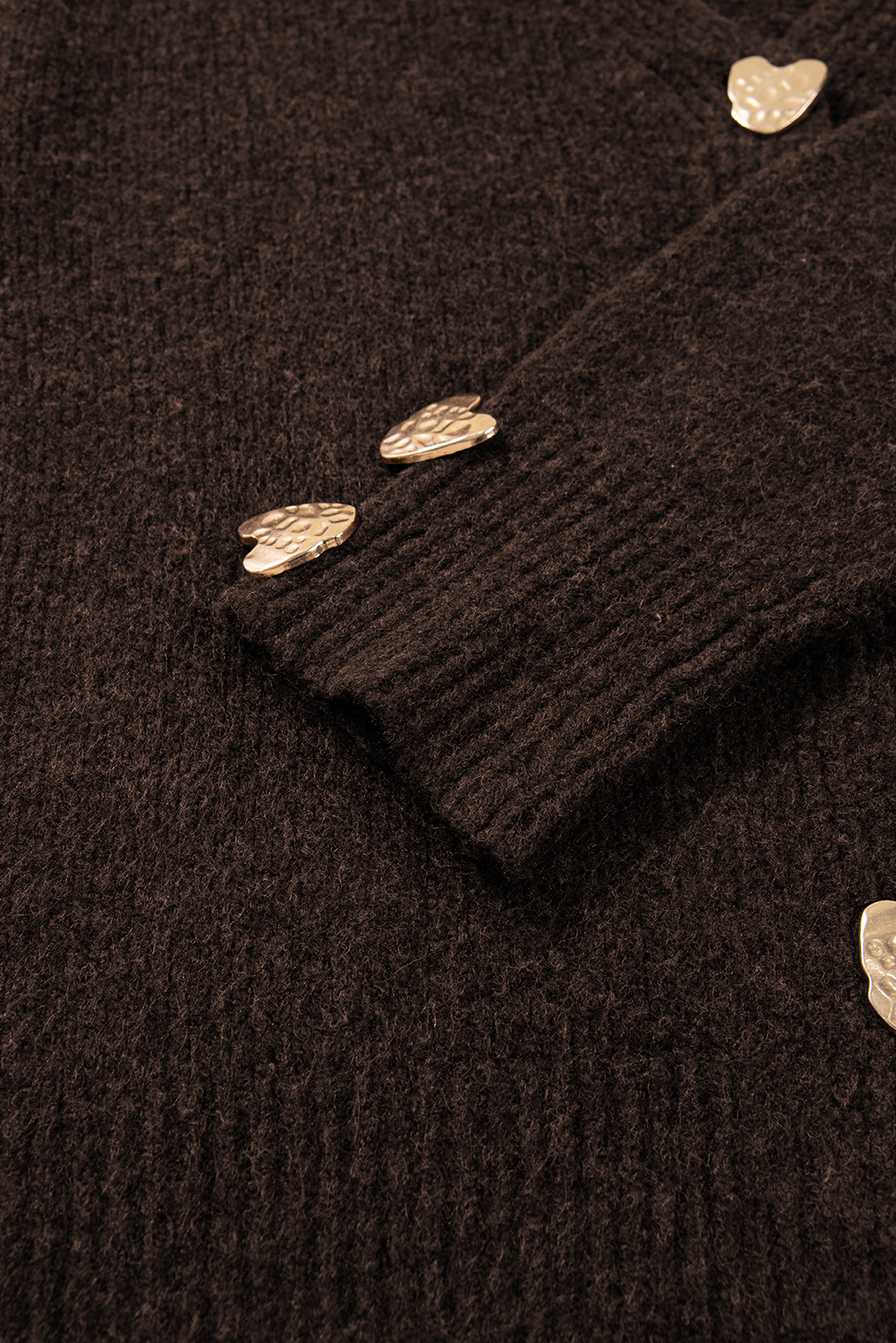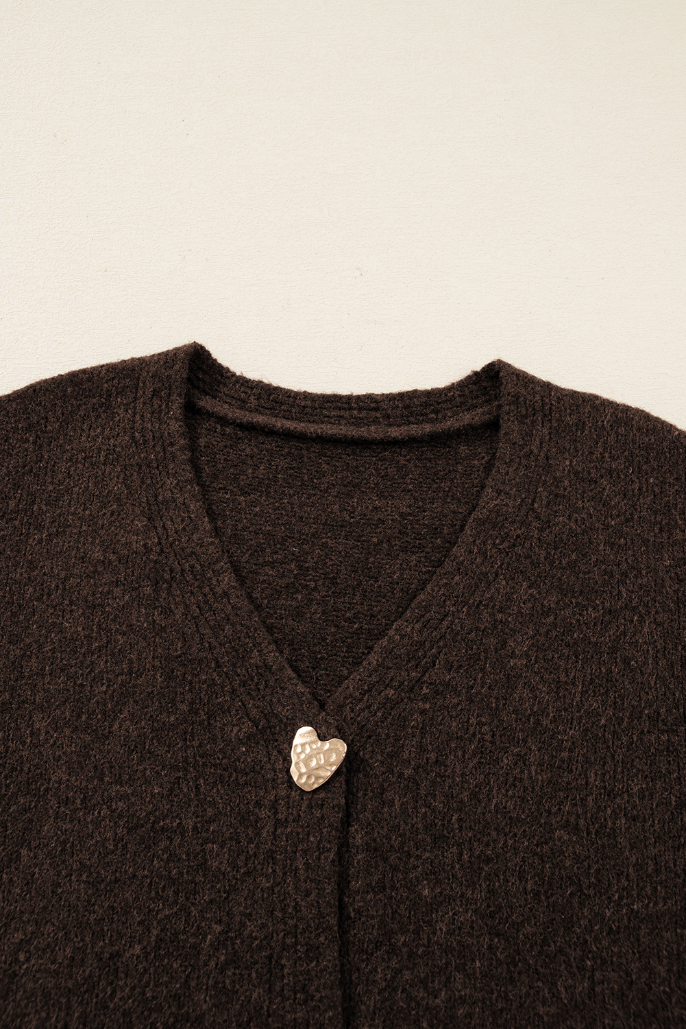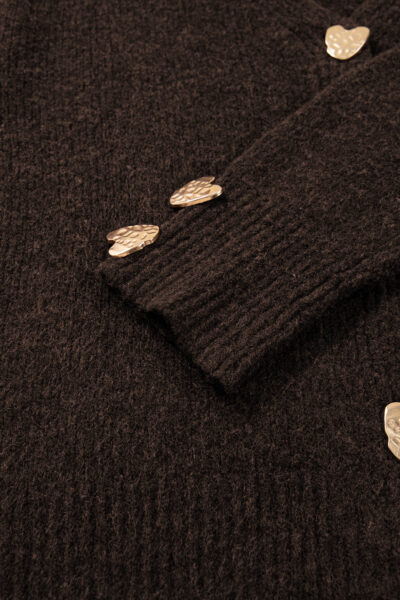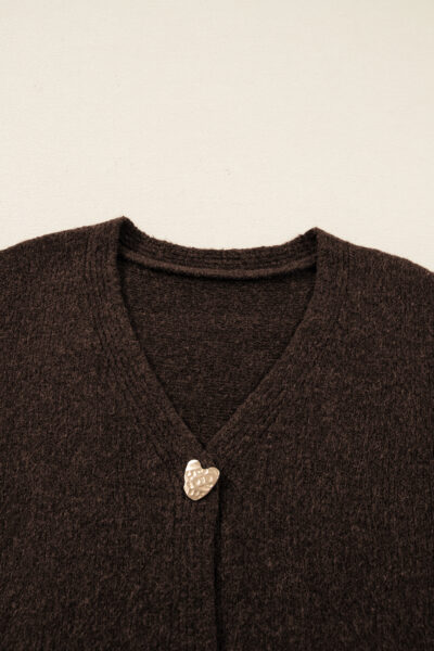 Chicory Coffee Heart Metal Button V Neck Cardigan Sweater
