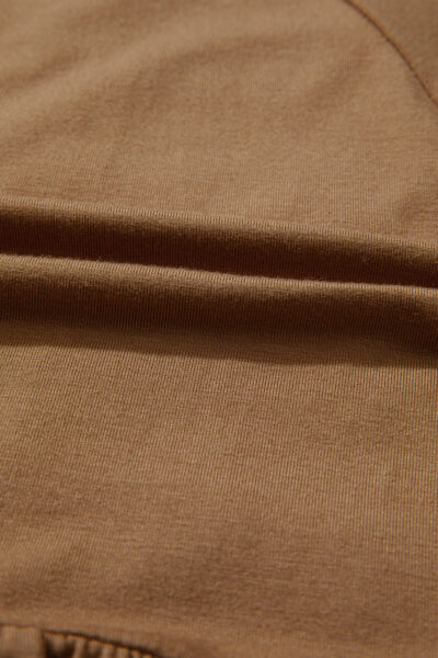 Cinnamon Smocked Bust Buttoned Split V Neck Flow Fit Blouse
