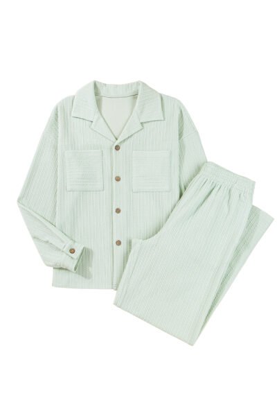 Clearly Aqua Textured Patched Chest Pocket Shirt and Pants Set