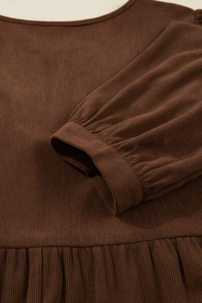 Coffee Embroidered Notched Neckline Textured Pleated High Waist Plus Size Midi Dress
