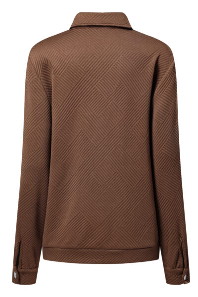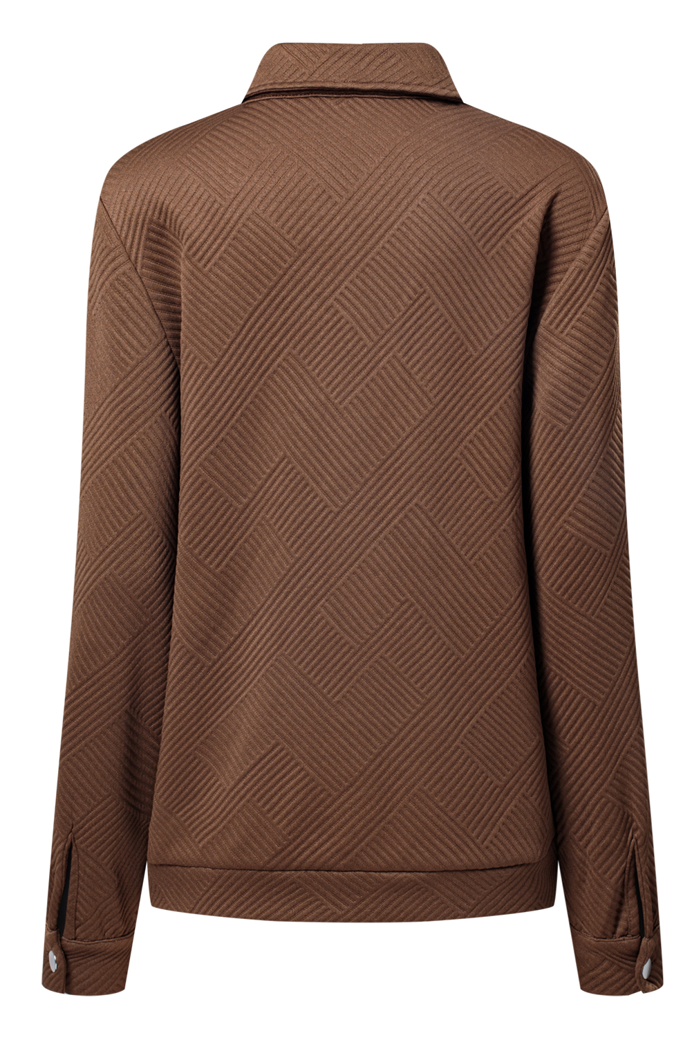 Coffee Solid Color Zip Up Button Flap Pocket Shirt Collar Jackets