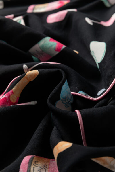 Color black Christmas Wine Glass Print Bow Knot Two Piece Pajama Set