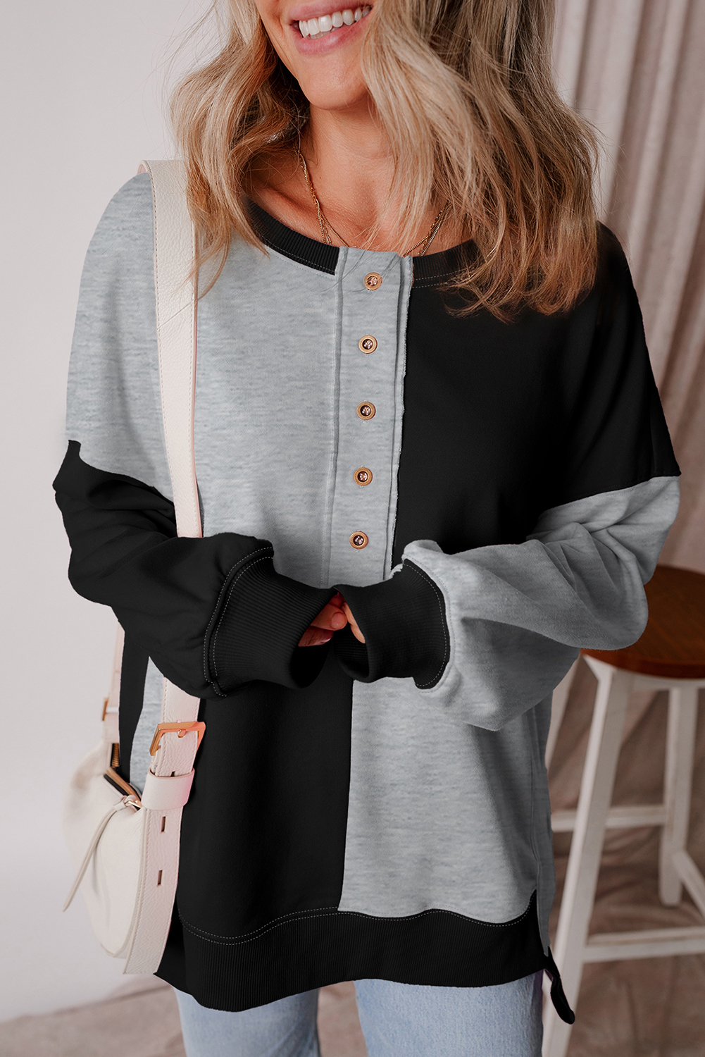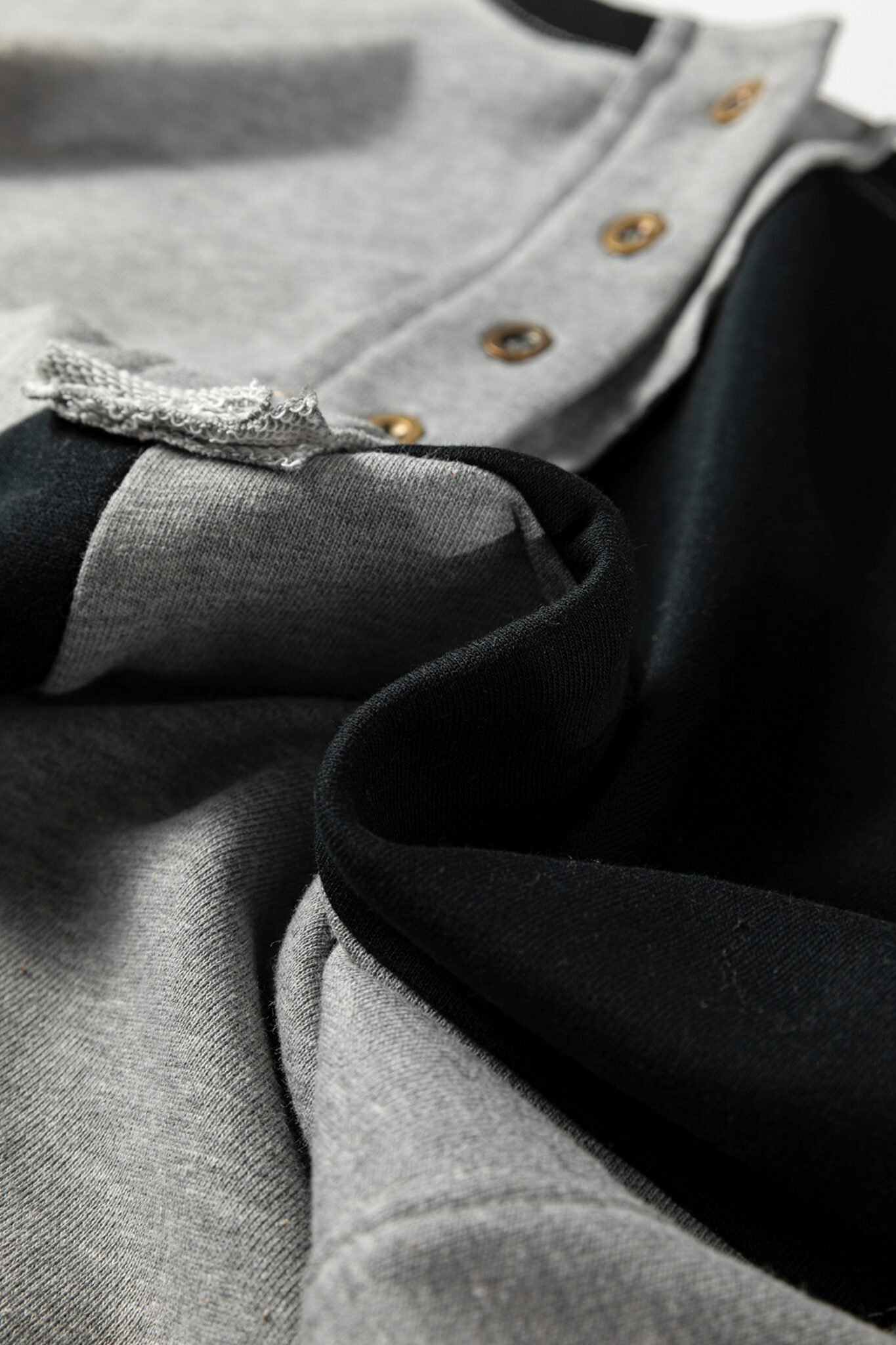 Color black Colorblock Henley High Low Oversize Sweatshirt