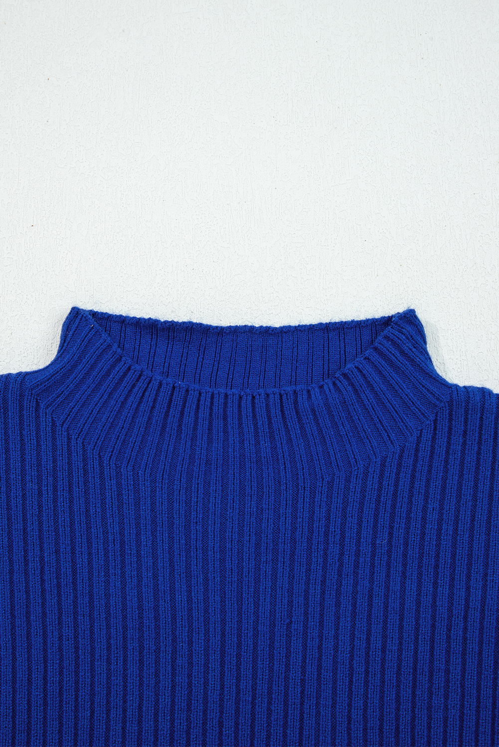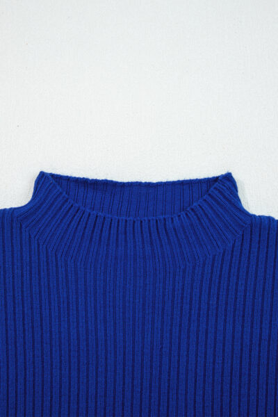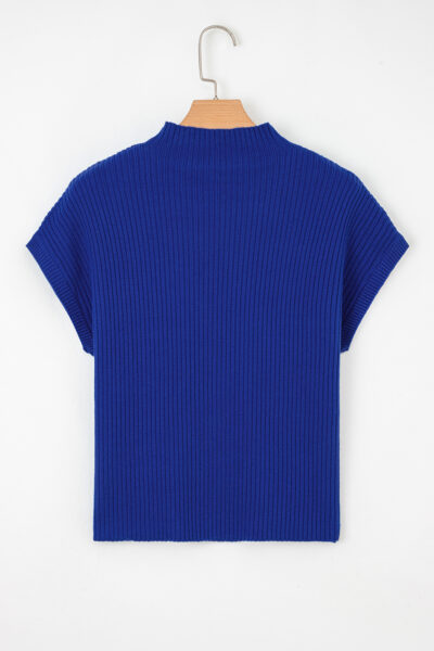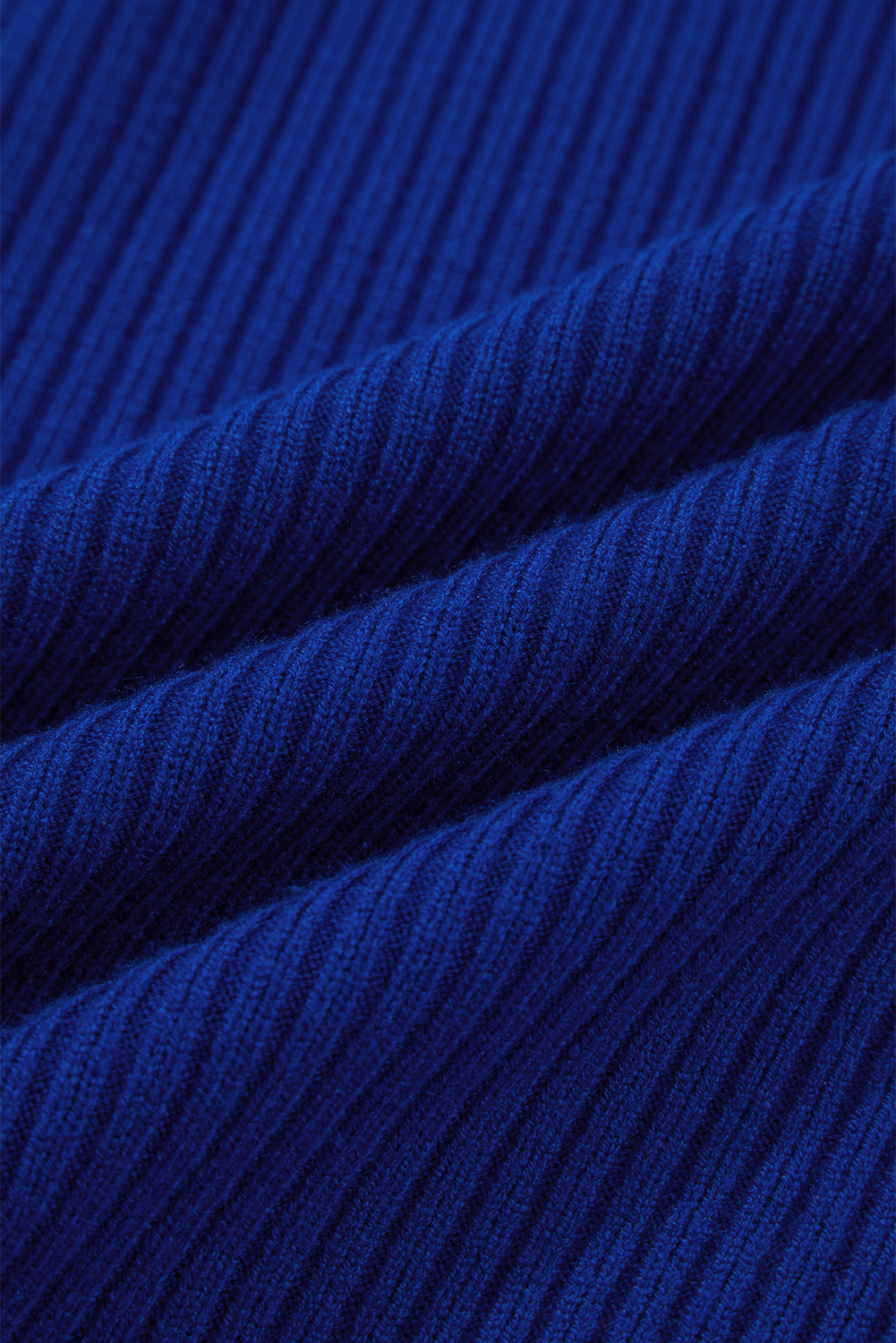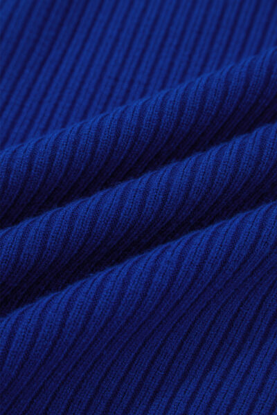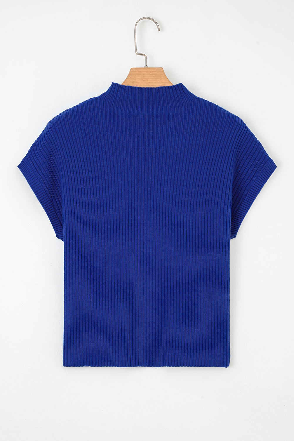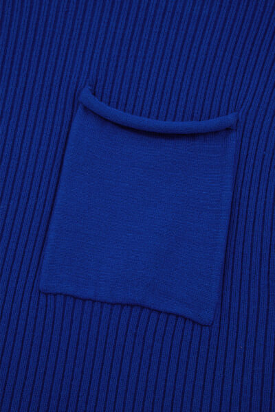 Dark Blue Patch Pocket Ribbed Knit Short Sleeve Sweater