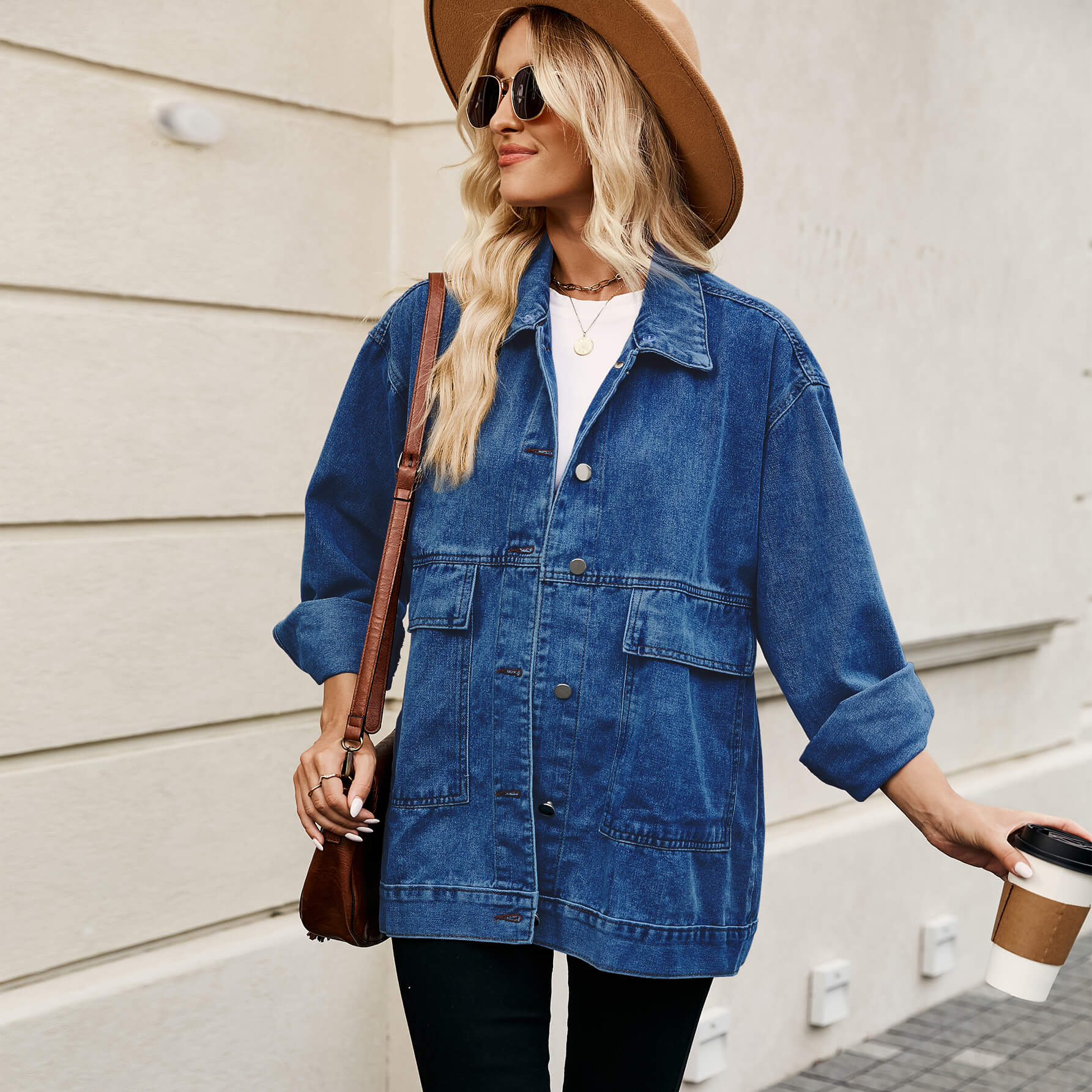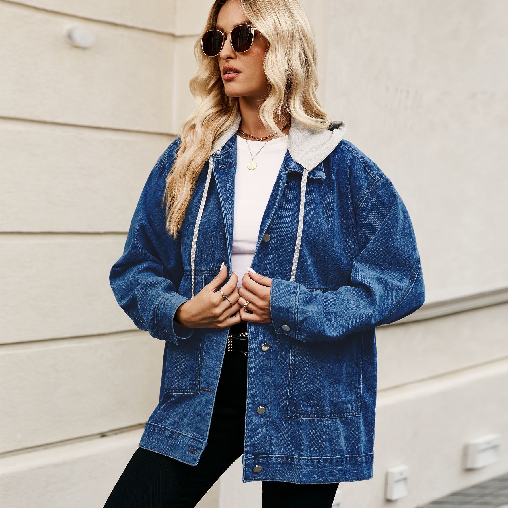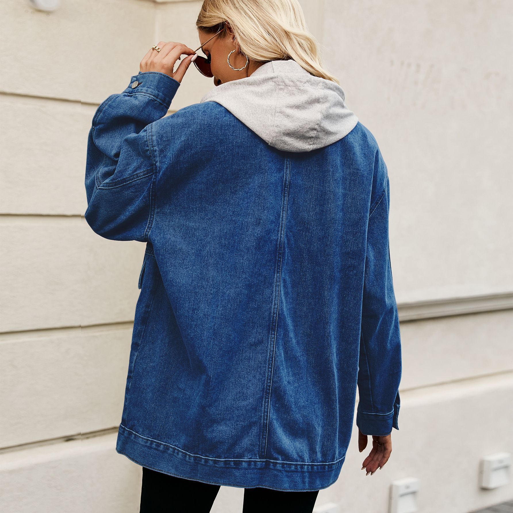Dark blue vintage loose-fitting denim casual jacket with detachable hood