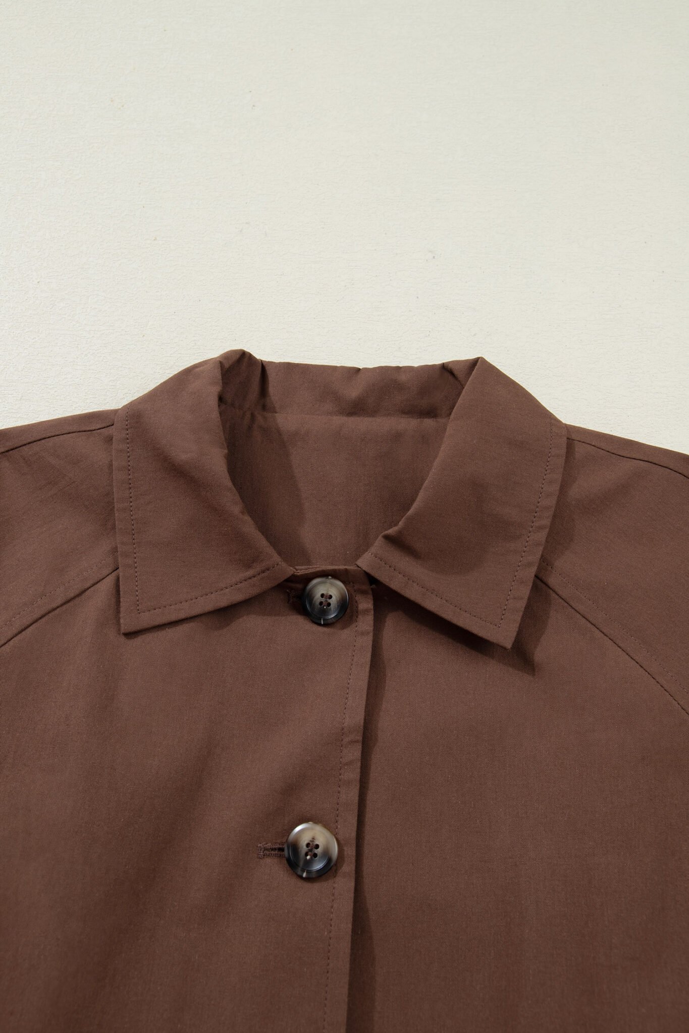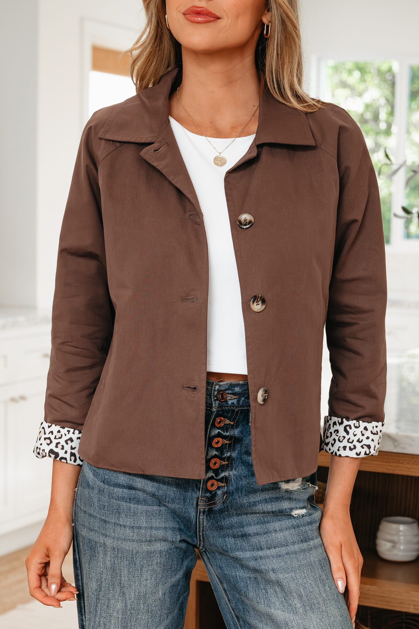 Dark Brown Collared Buttoned Leopard Liner Patchwork Chic Jacket