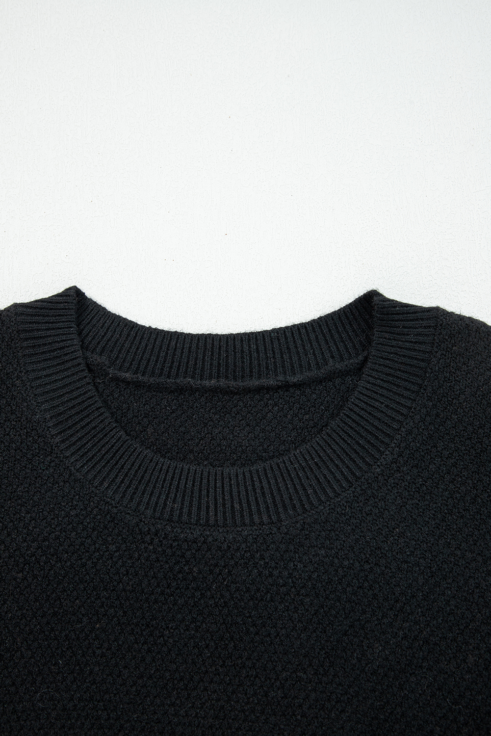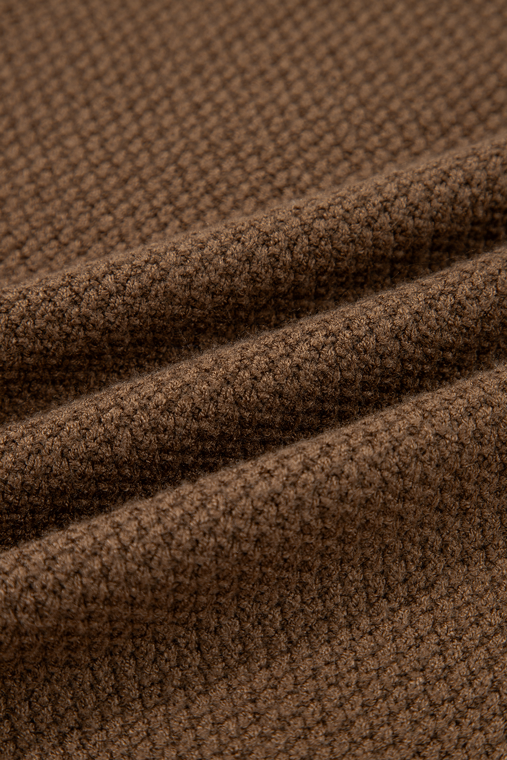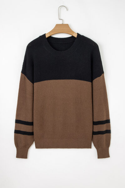 Dark Brown Color Block Knit Striped Sleeve Detail Casual Sweater