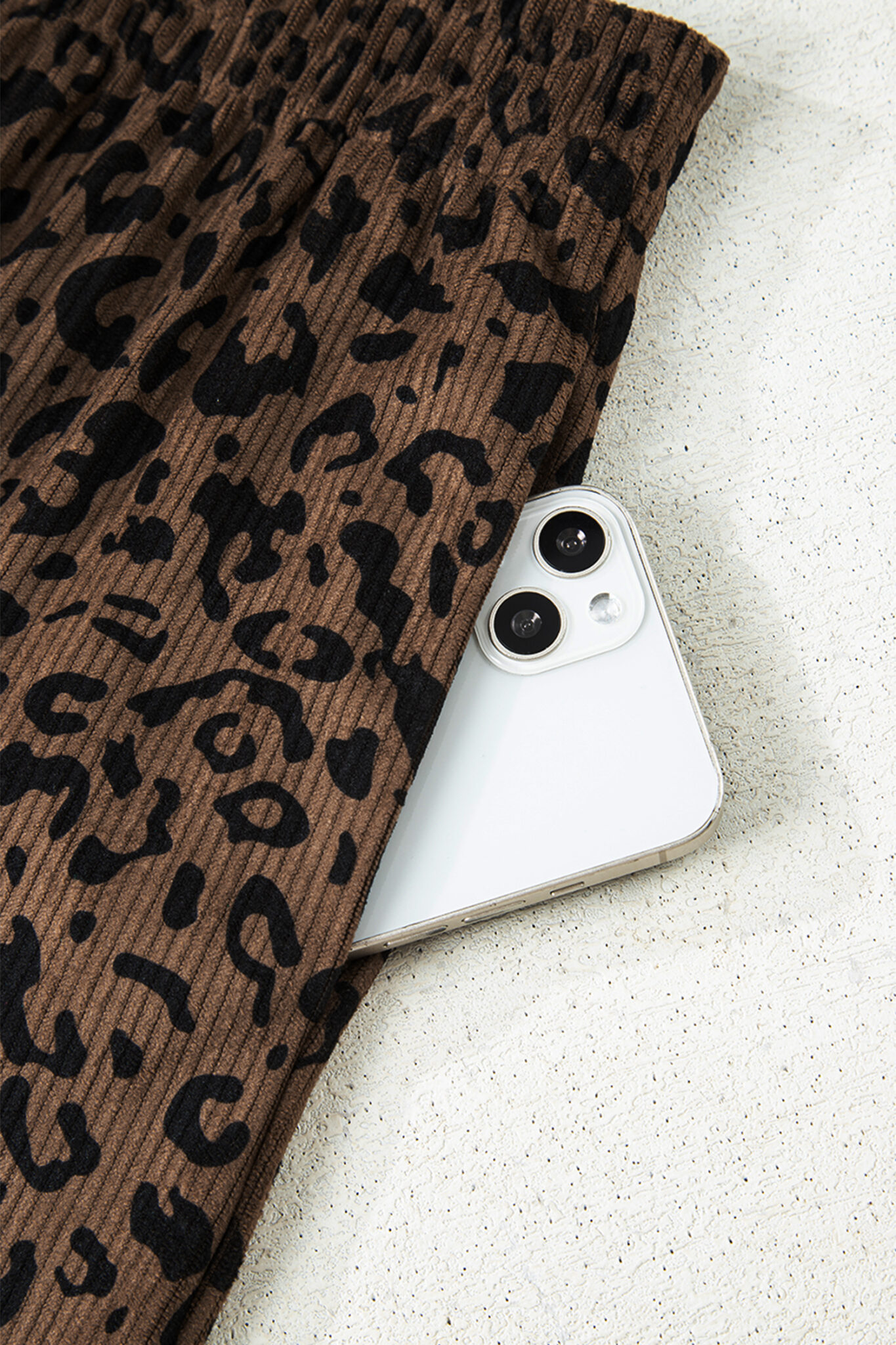 Dark Brown Leopard Print Elastic High Waist Loose Corduroy Pants