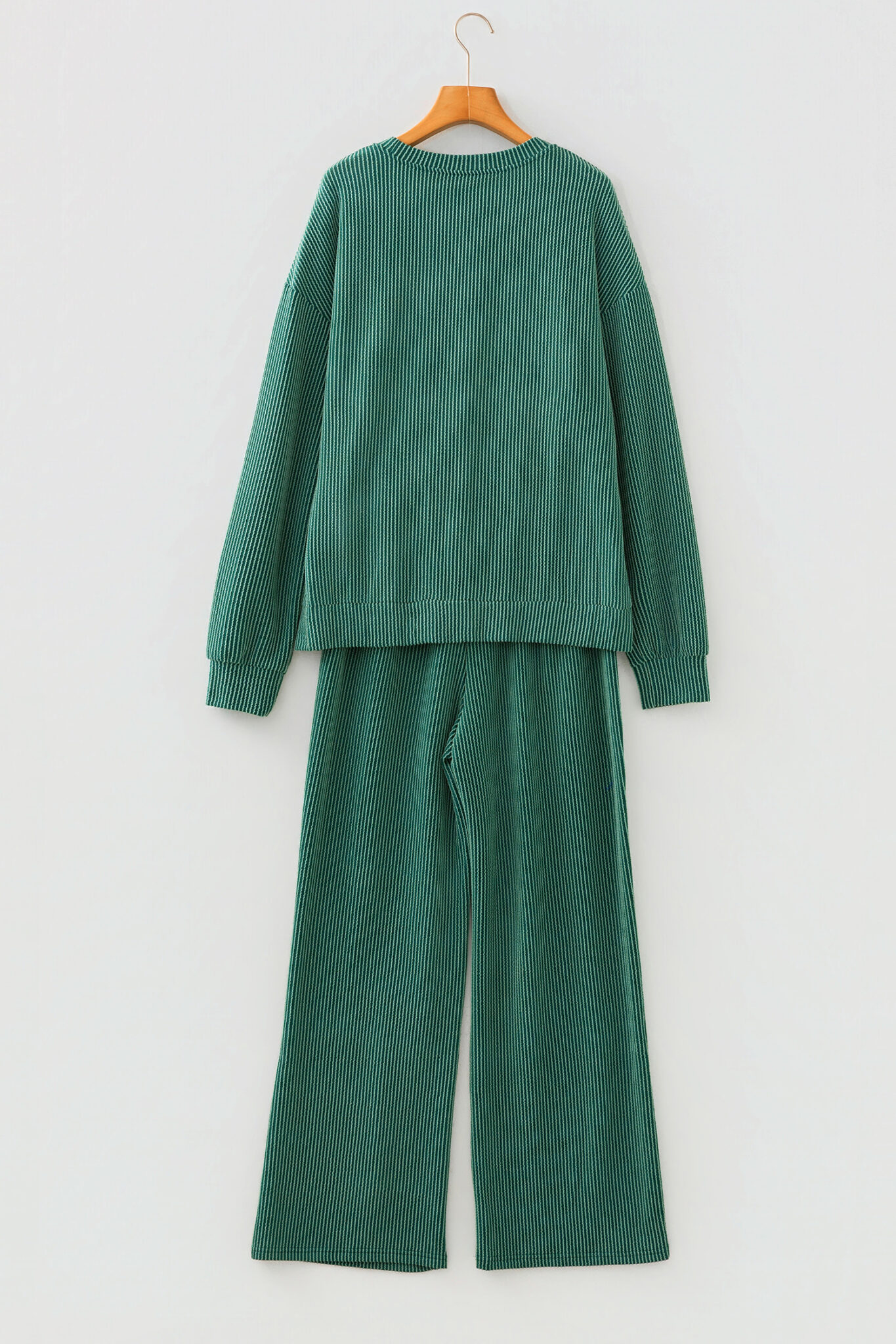 Dark Green MERRY Corded Long Sleeve Top and Pockets Pants Set