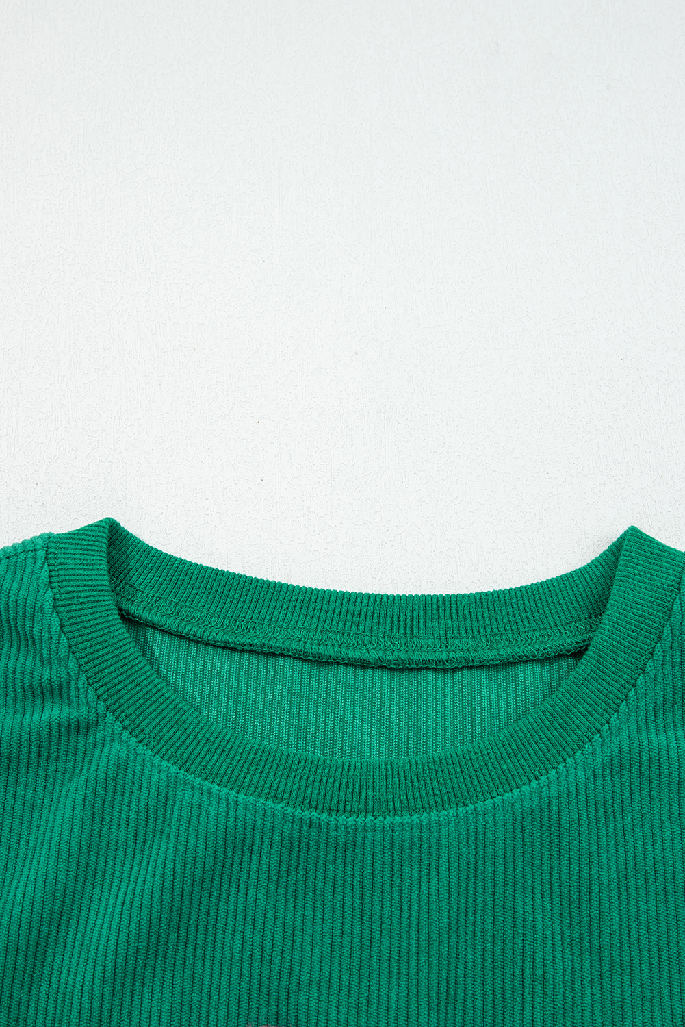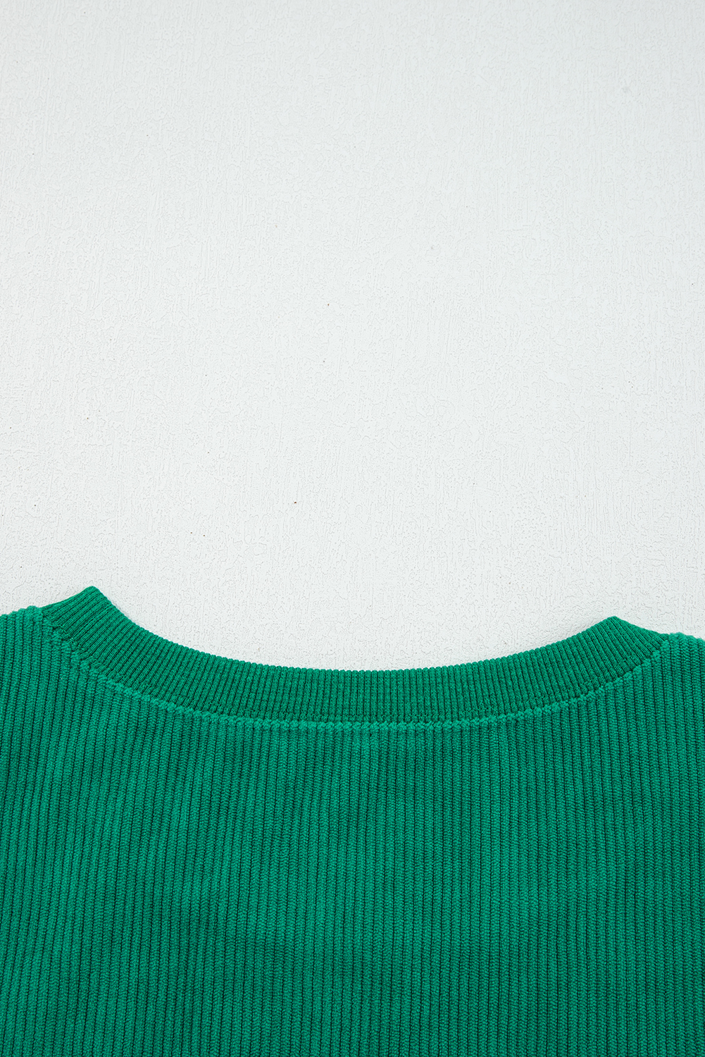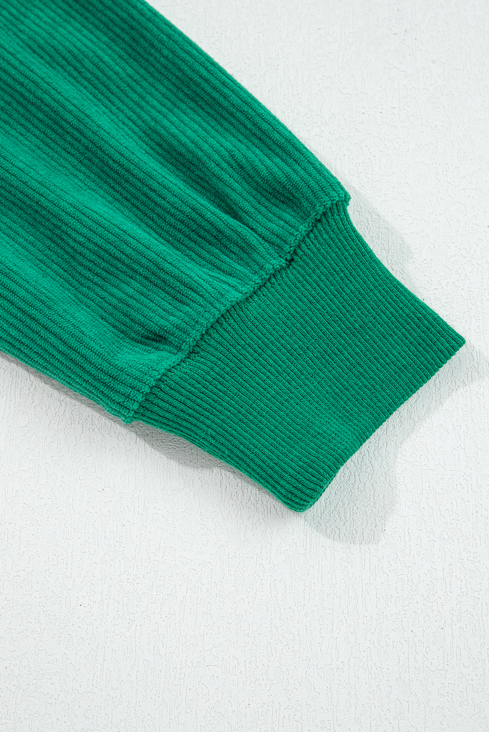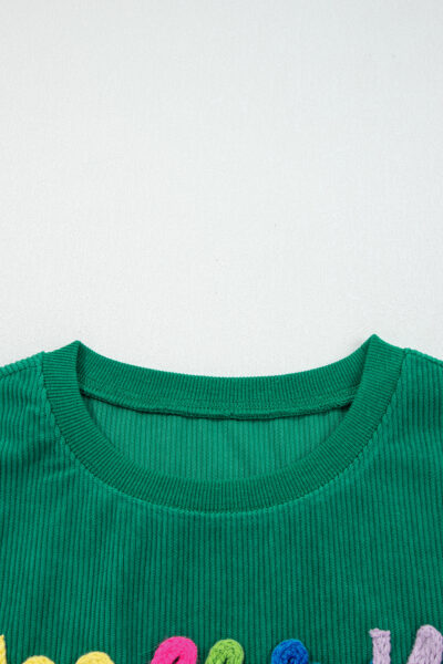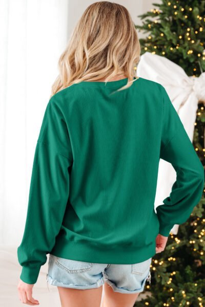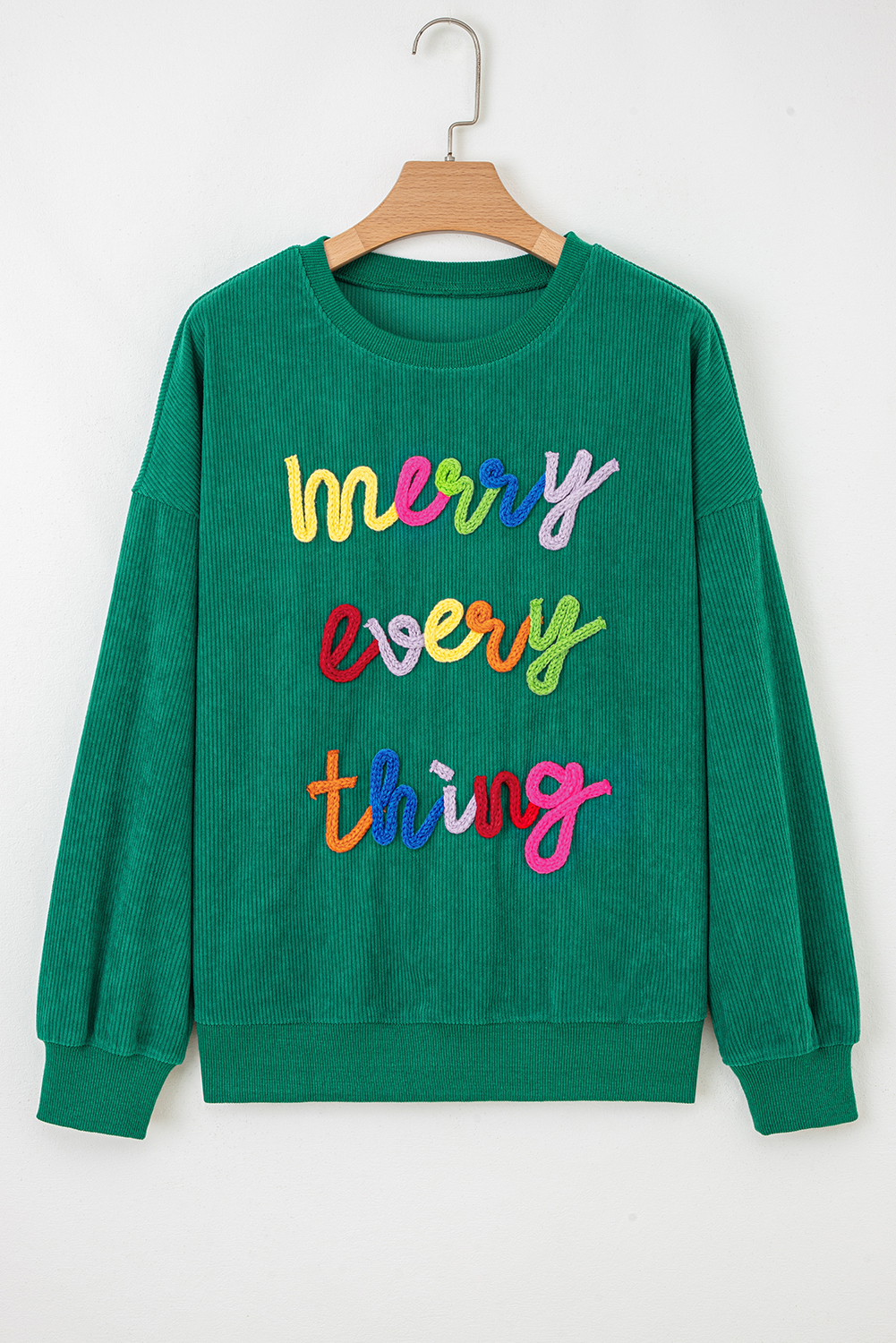 Dark Green merry little thing Corded Letter Graphic Ribbed Loose Sweatshirt