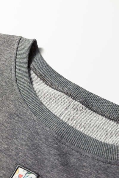 Dark Grey LOVE Graphic Exposed Seam Patchwork Uneven Hem Chic Sweatshirt
