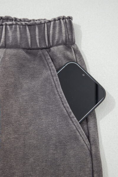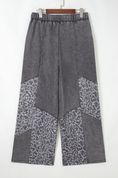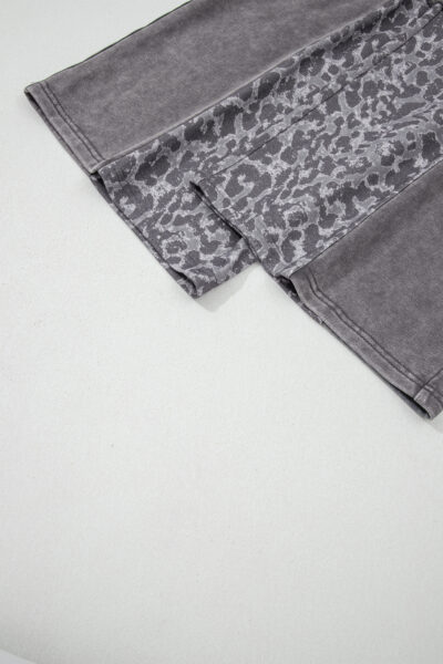 Dark Grey Mineral Wash Leopard Patchwork Loose Pants