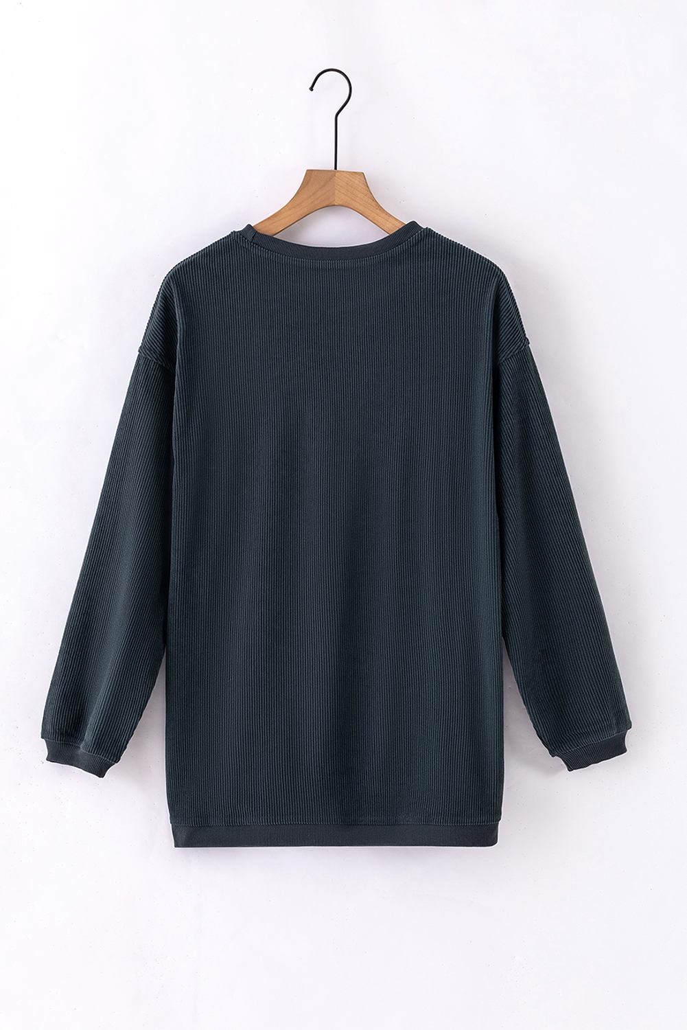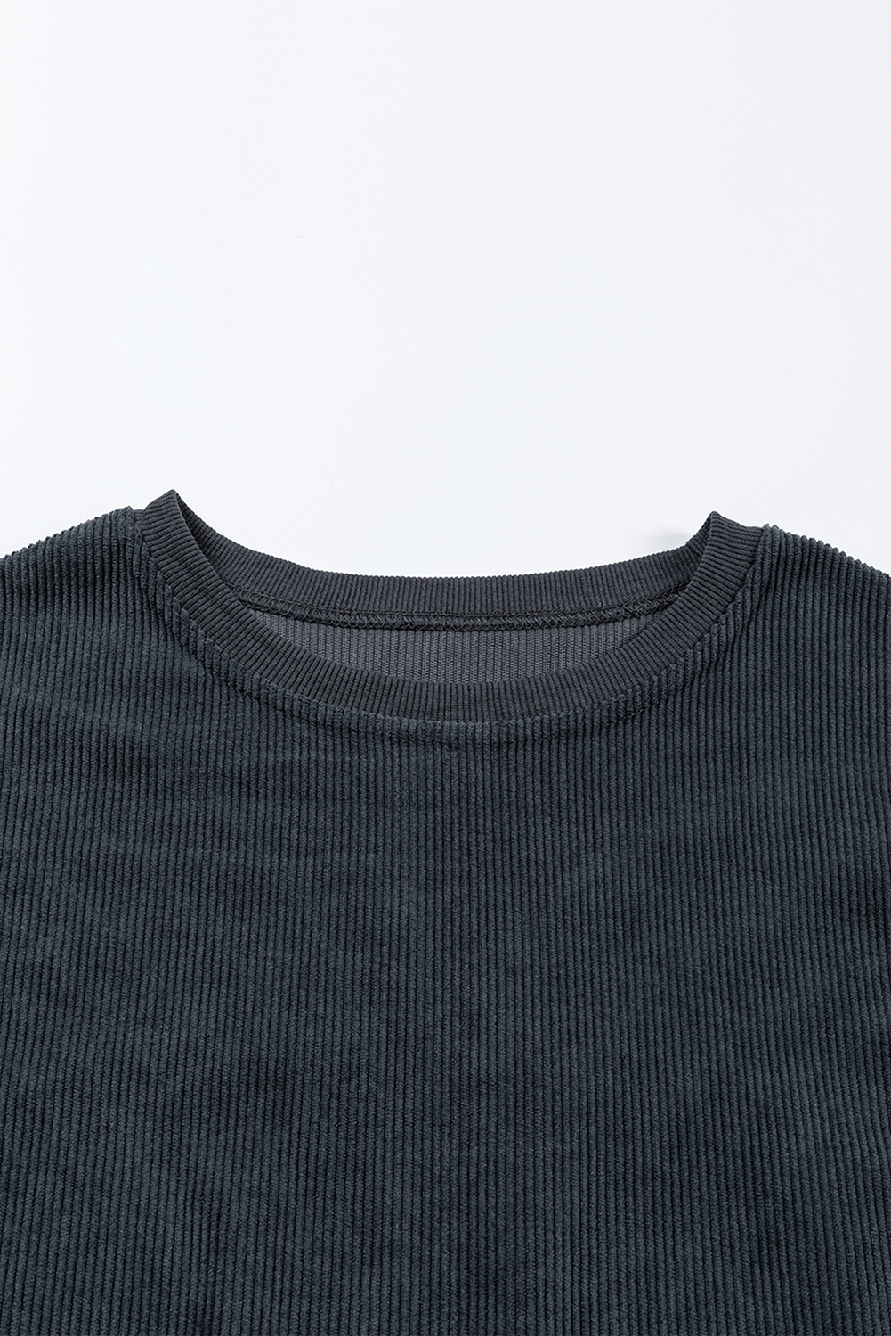Dark Grey Ribbed Corduroy Oversized Sweatshirt