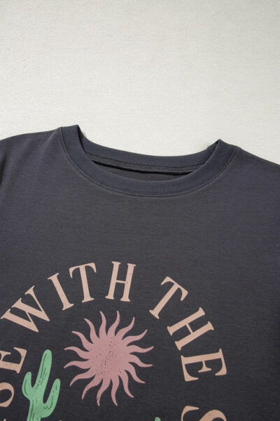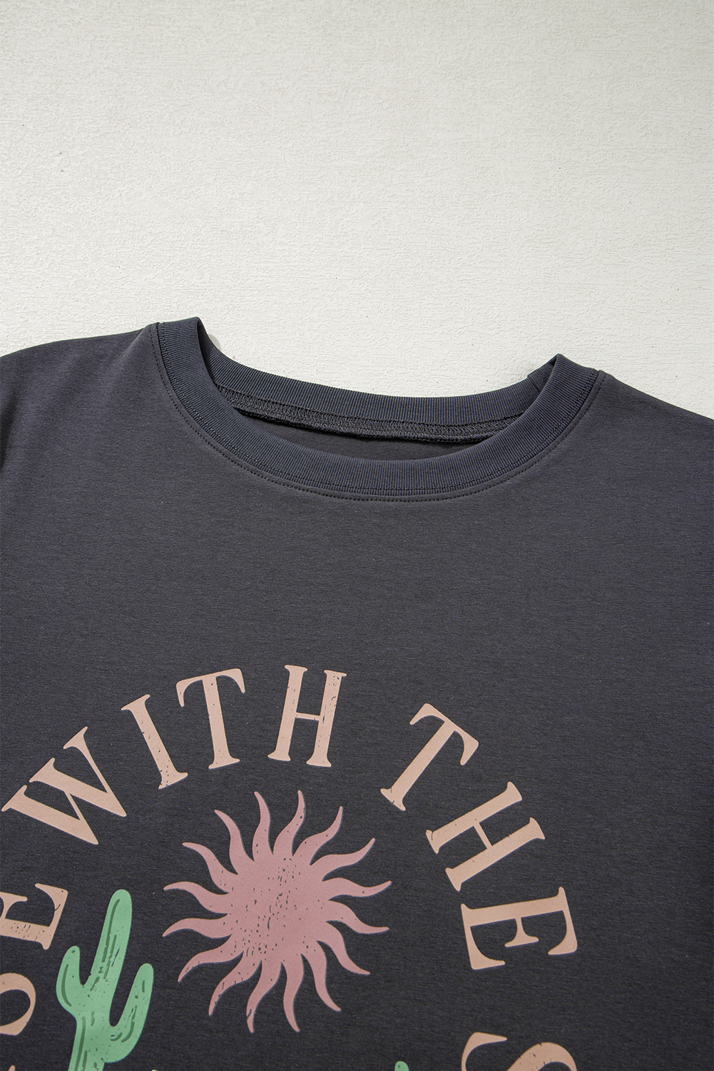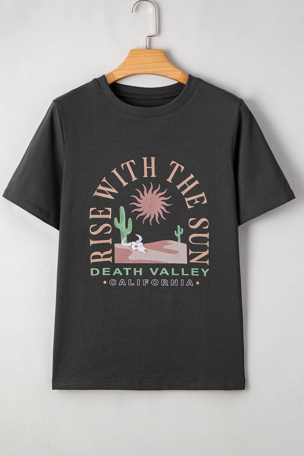 Dark Grey RISE WITH THE SUN Western Fashion Graphic Tee