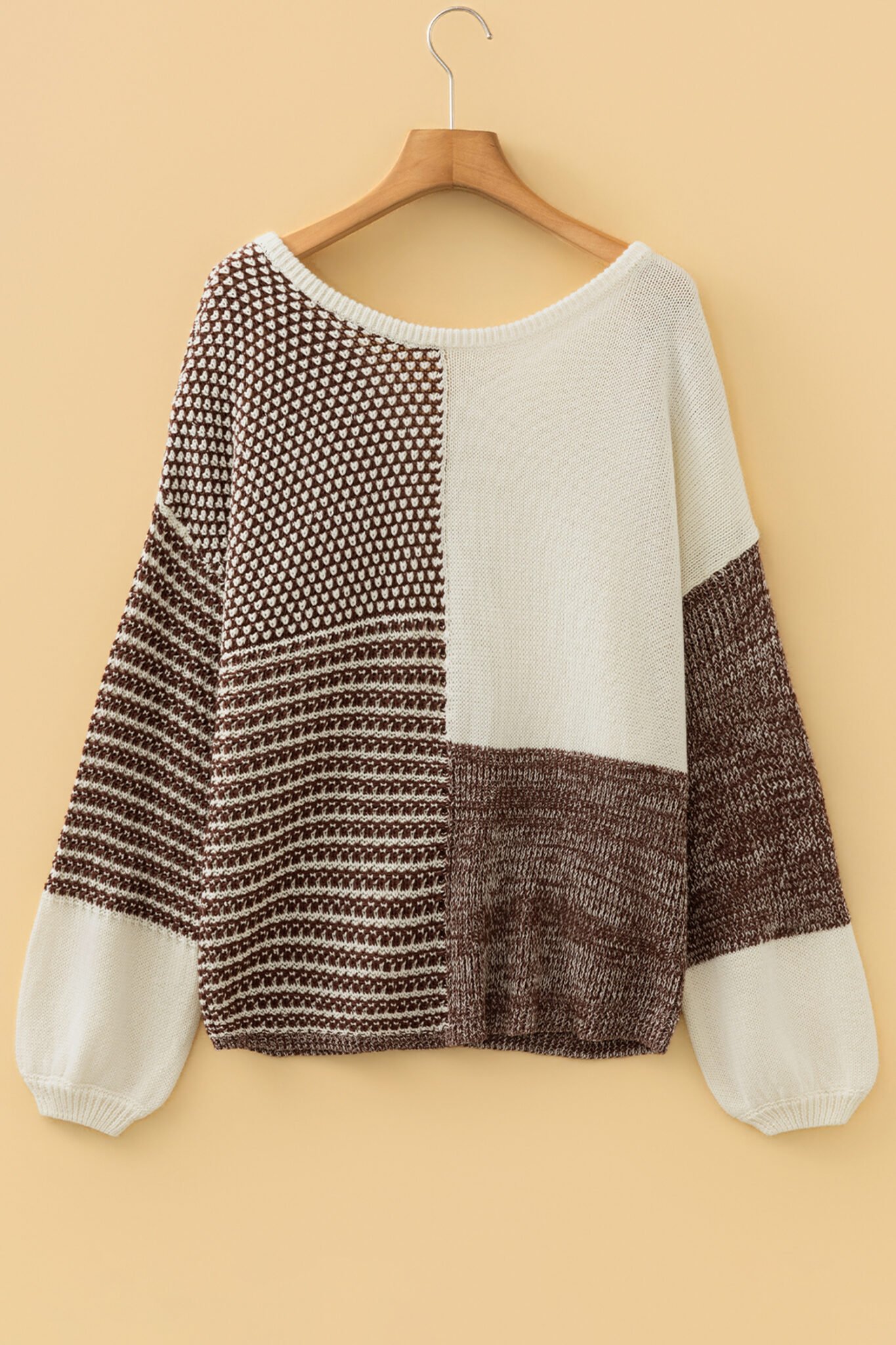 Dark Khaki Color Block Back Tie Drop Shoulder Loose Sweater