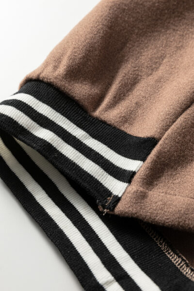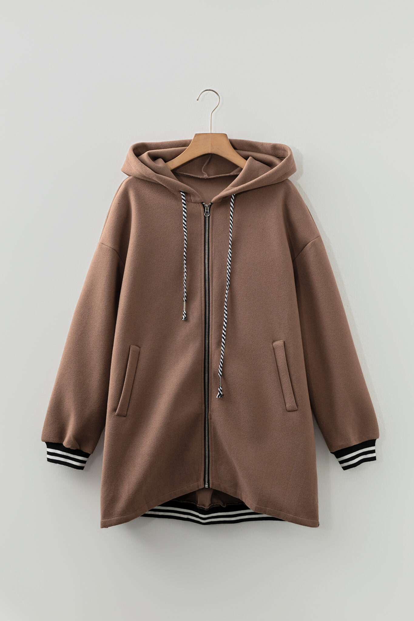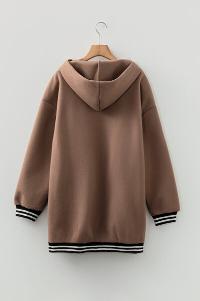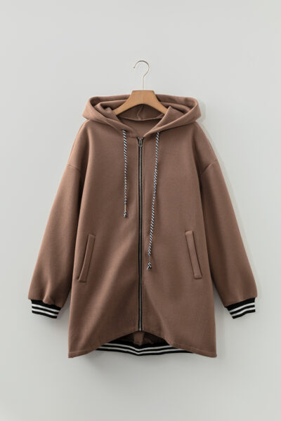 Dark Khaki Contrast Cuffed Drop Shoulder Zip up Tunic Hoodie