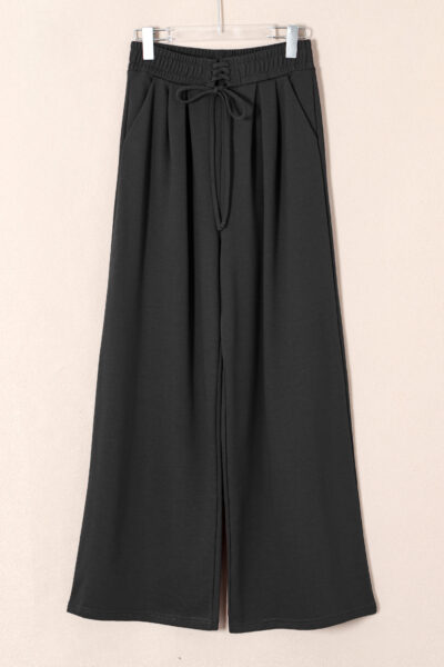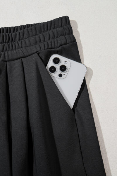 Dear Lovers Black Tied Elastic High Waist Pleated Detail Solid Sweatpants