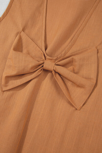 Desert Gold Bowknot V Cut Backless Cotton Tank Top