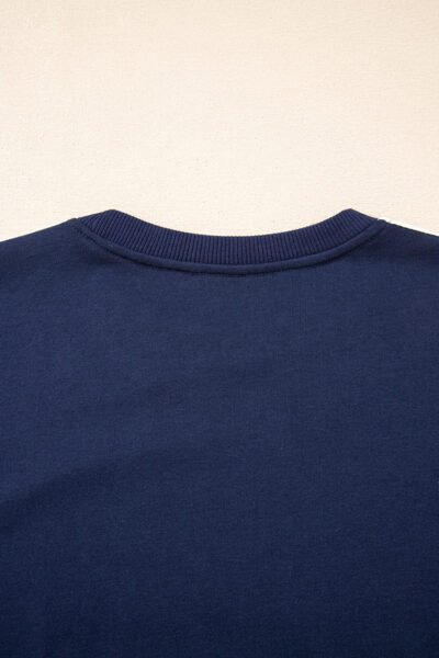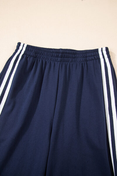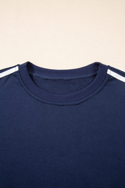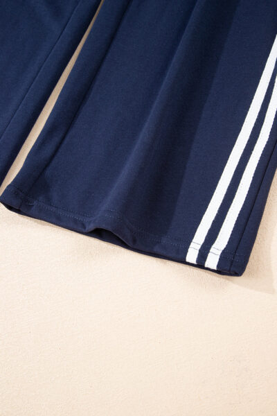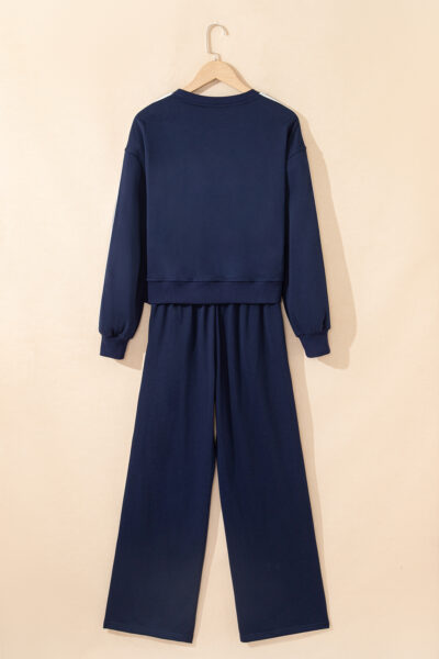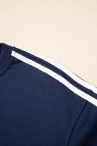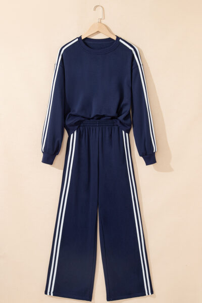 Dirty blue Varsity Striped Detail Crewneck Pullover Elastic Sweatpants 2pcs Outfit