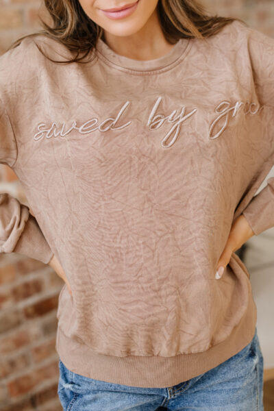 DUNE saved by grace Letter Embroidery Mineral Wash Loose Sweatshirt