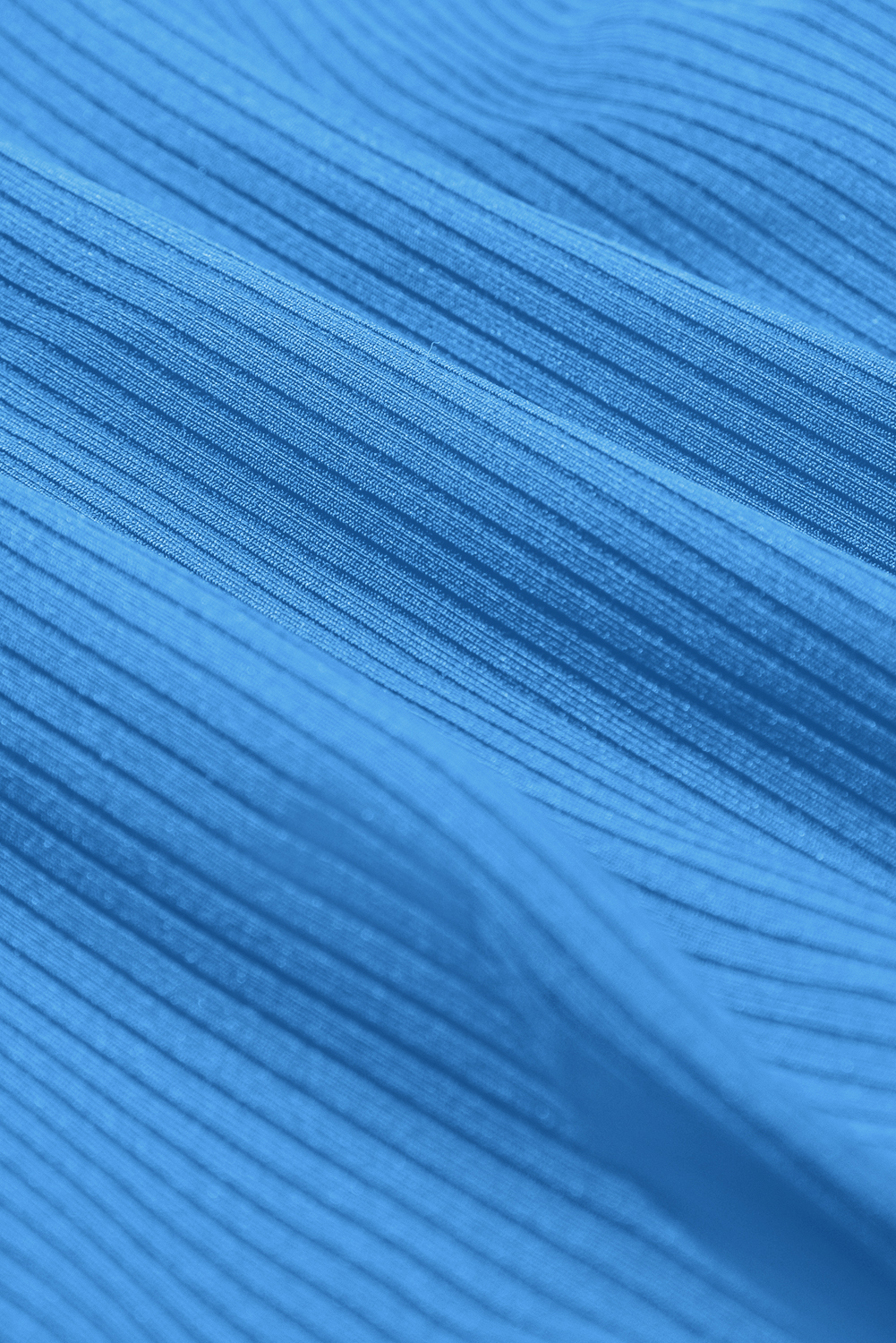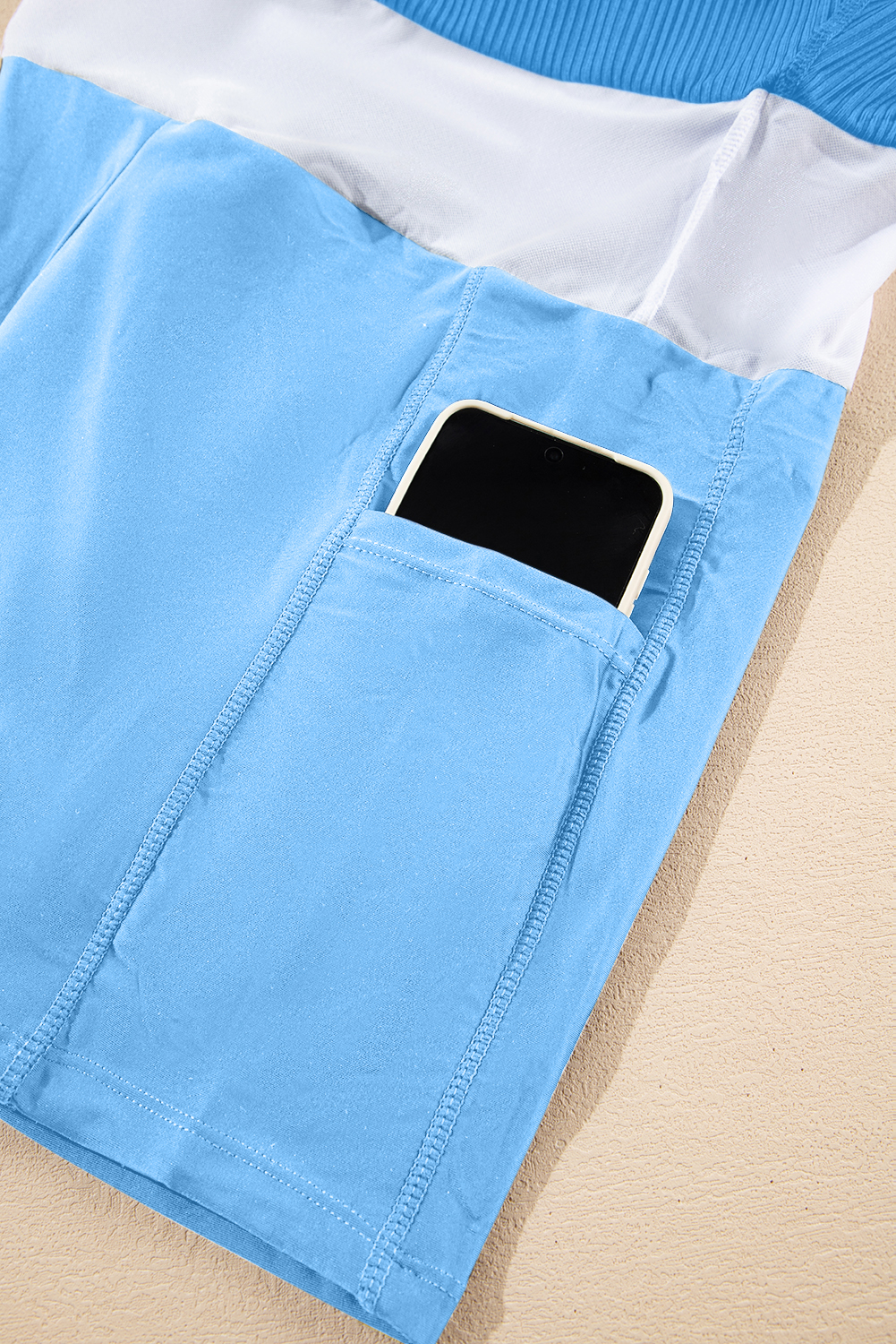 Dusk Blue Color Block Edge Ribbed Pocketed Lined Swim Dress