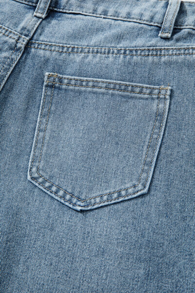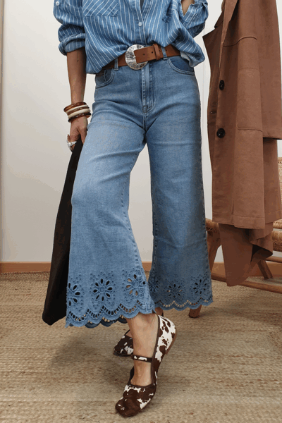 Dusk Blue Embroidered Cropped Wide Leg High Waist Jeans