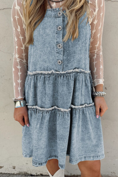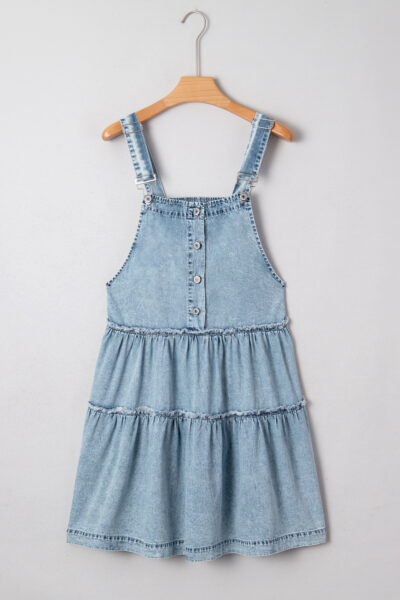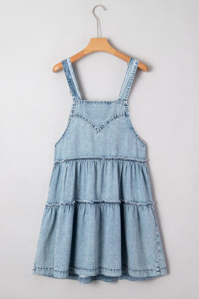 Dusk Blue Light Wash Tiered Flowy Overall Denim Dress