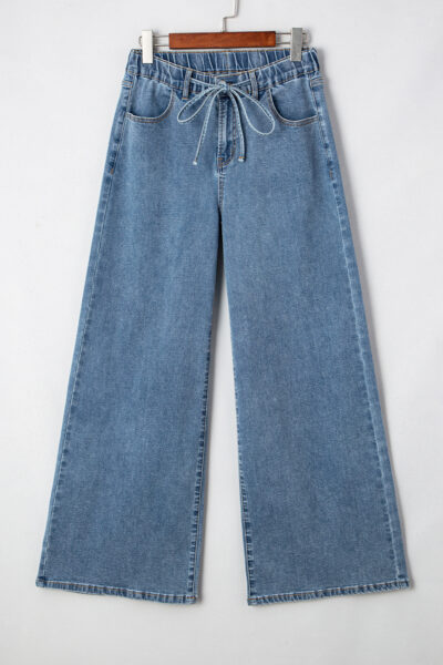 Dusk Blue Medium Wash Super Wide Leg Denim Pants