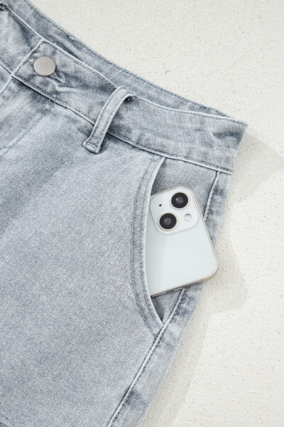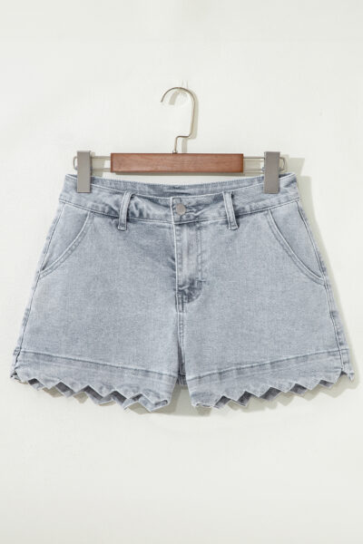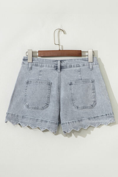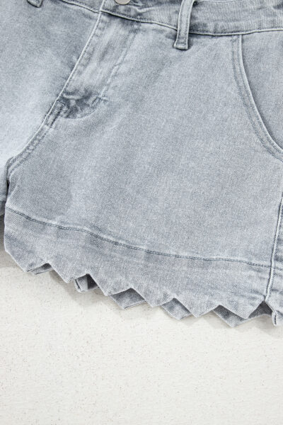 Dusk Blue Scalloped Hemline Acid Wash High Waist Denim Shorts