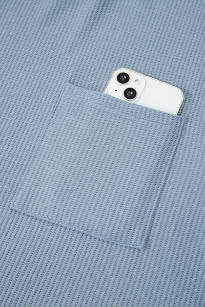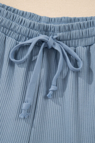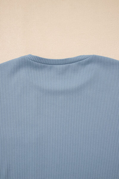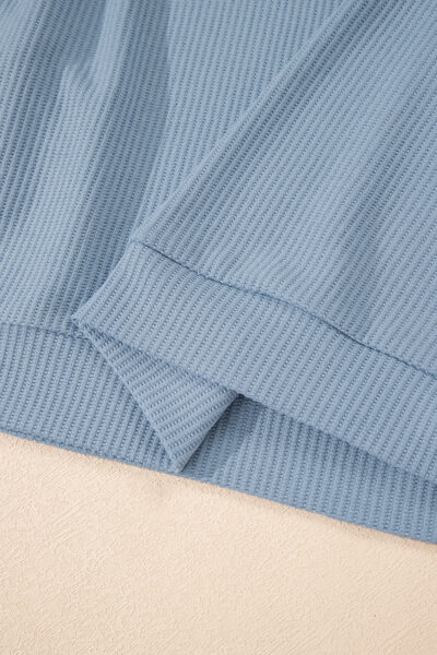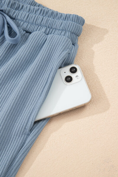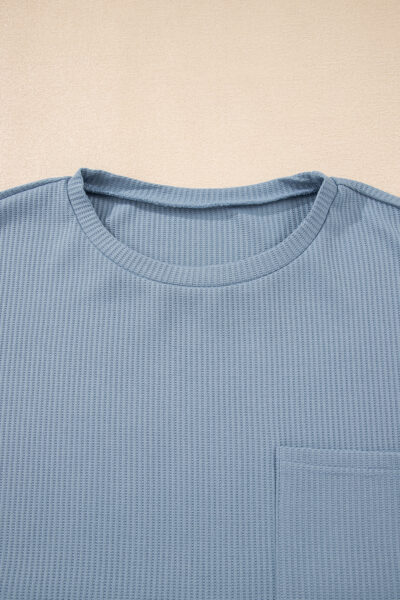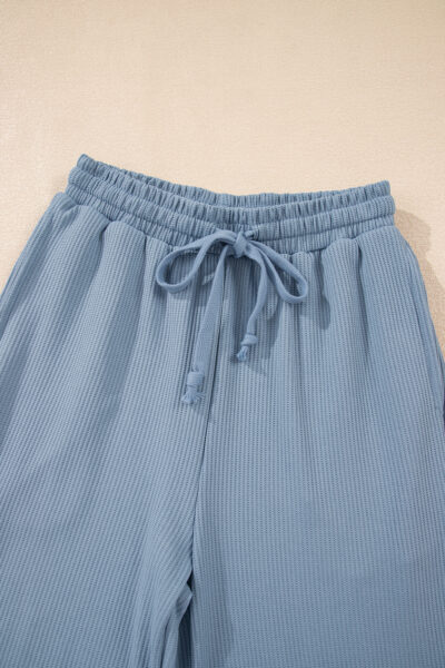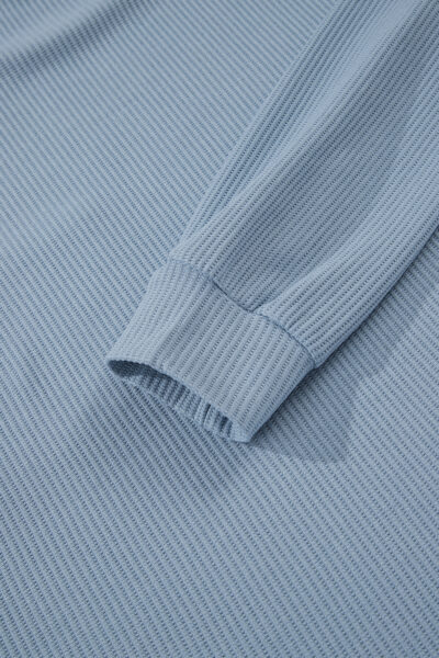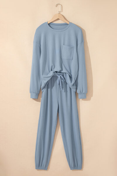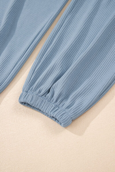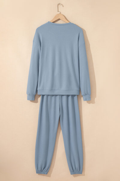 Dusk Blue Solid Color Ribbed Loose Long Sleeve Top Casual Pant Set