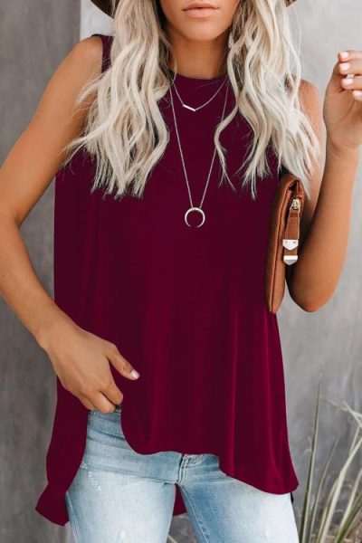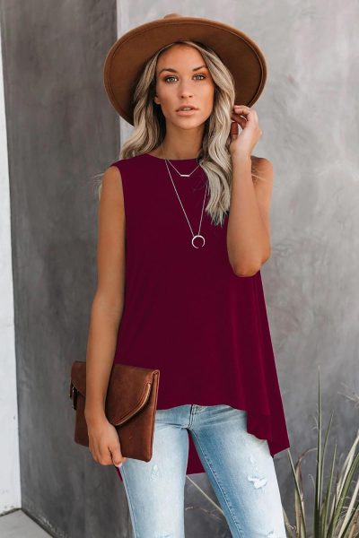 Edita Women’s O-Neck Sleeveless Relaxed Tank Top Red
