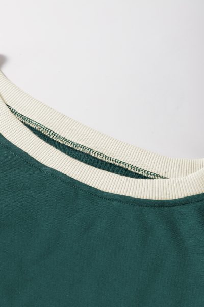 Evergreen Color Contrast Loose Pullover and Lace-up Waist Skort Set