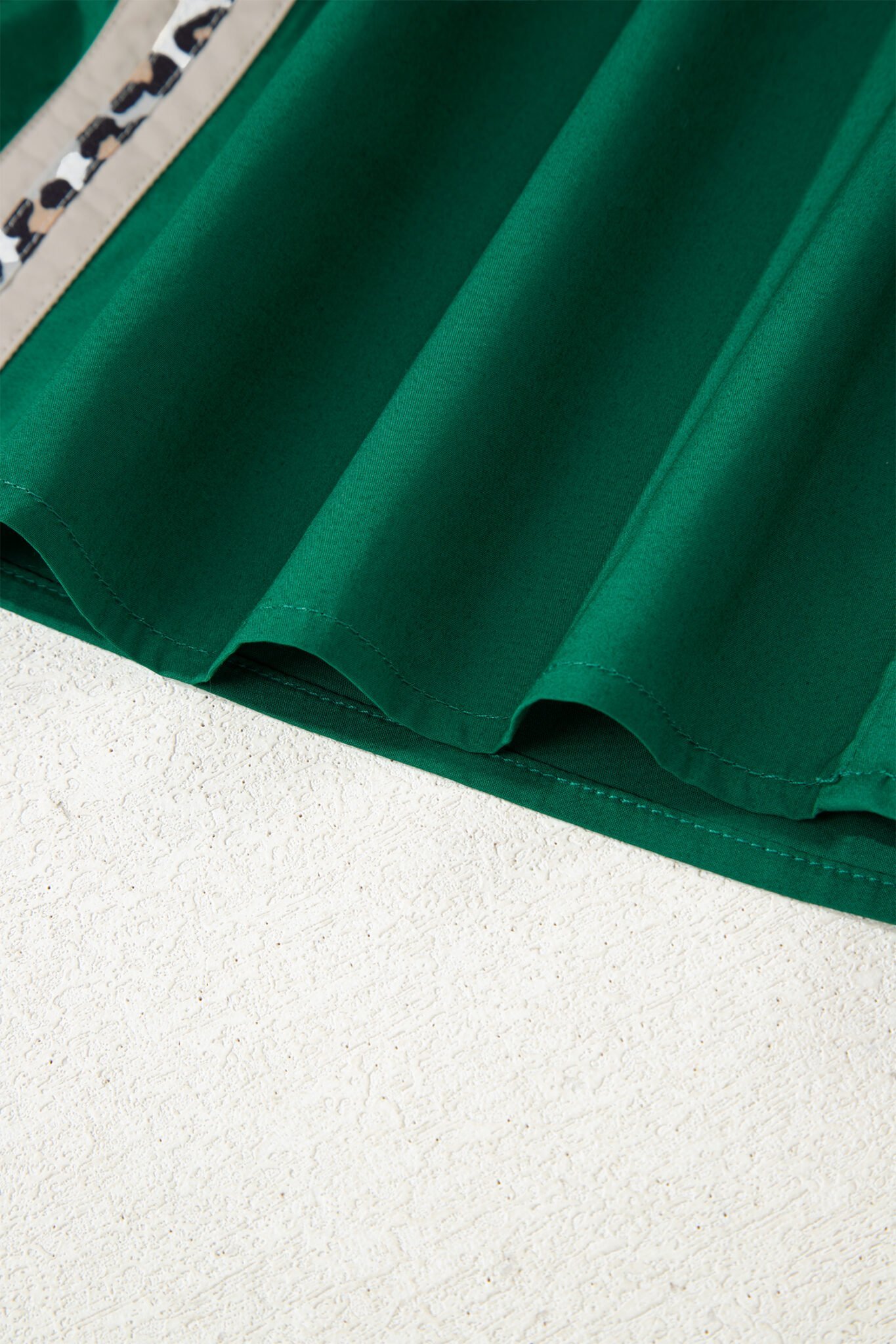 Evergreen Puffy Flounce Sleeve Leopard Trim V Neck Blouse