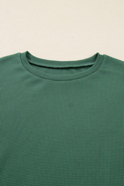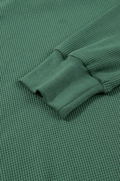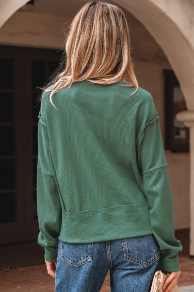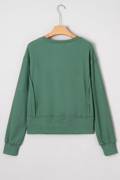 Evergreen Solid Color Raw Seam Patchwork Ribbed Drop Shoulder Sweatshirt