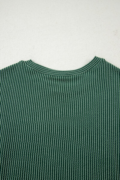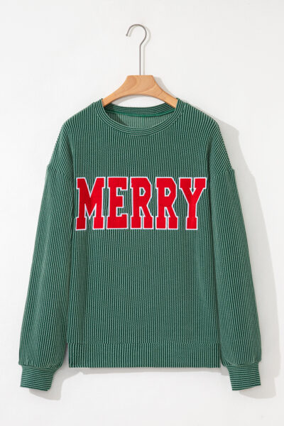 Evergreen Twisted Rib Outlined Merry Letter Graphic Loose Long Sleeve Top