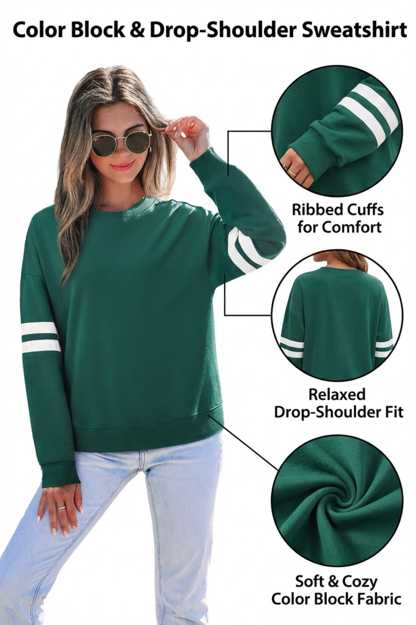 Evergreen Varsity Striped Detail Drop Shoulder Oversized Sweatshirt
