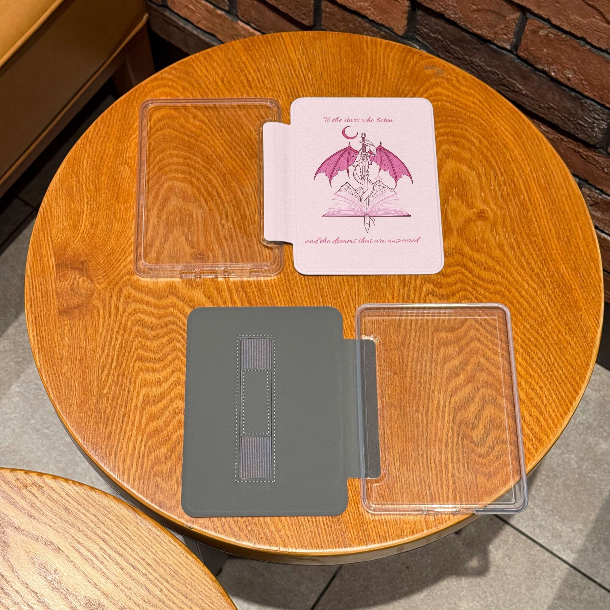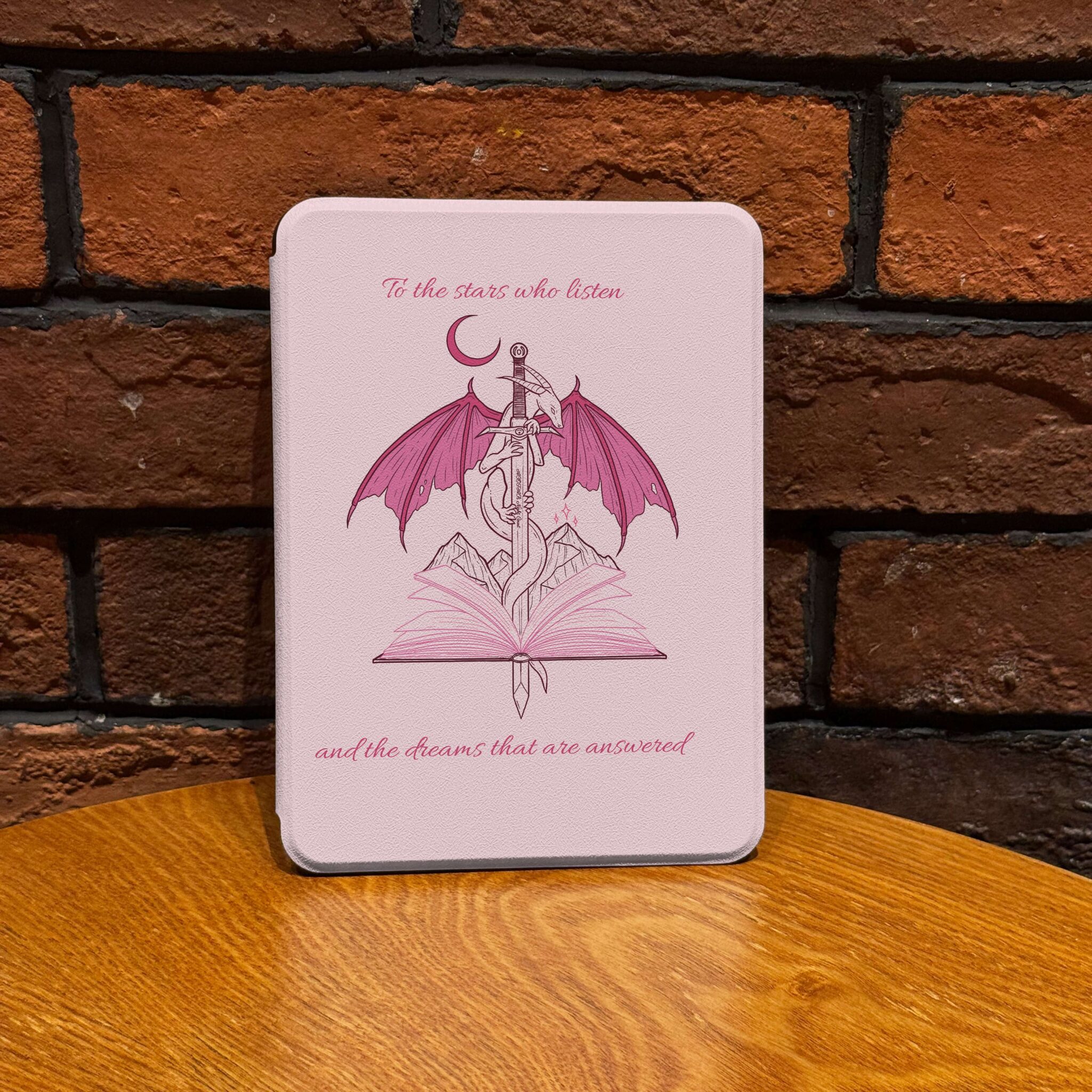Fantasy Book Lover Kindle Case Pink Dragon & Quote Design