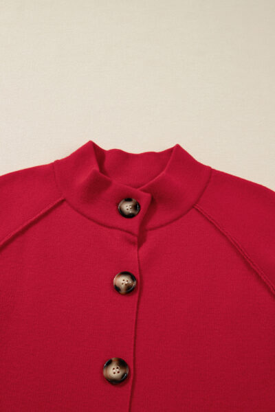 Fiery Red Collared Button Front Wrapped Cardigan Jacket