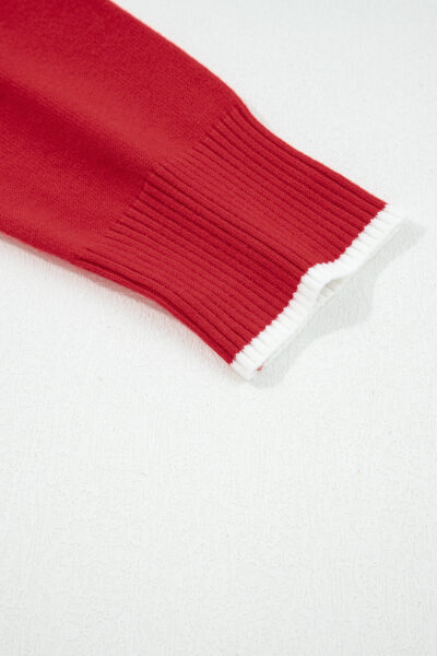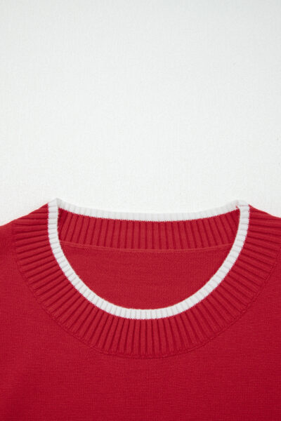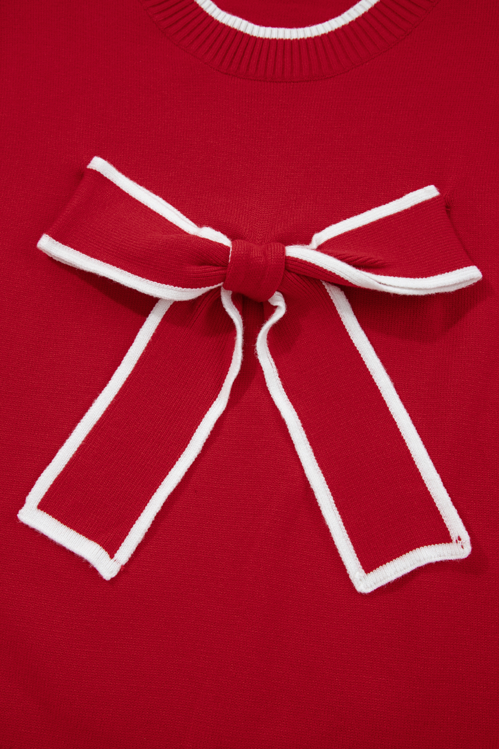 Fiery Red Contrast Trim Big Bow Accent Holiday Cropped Sweater