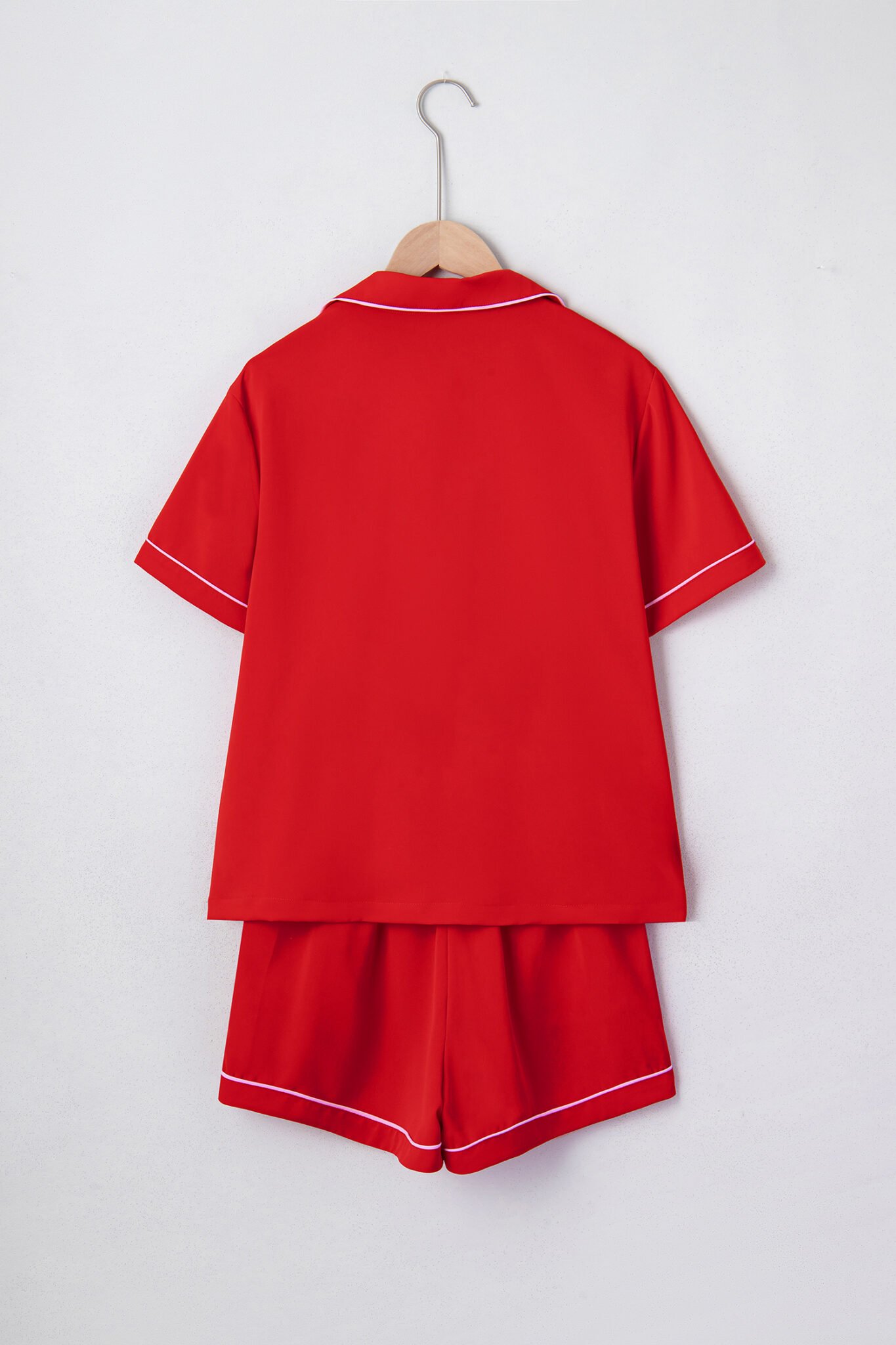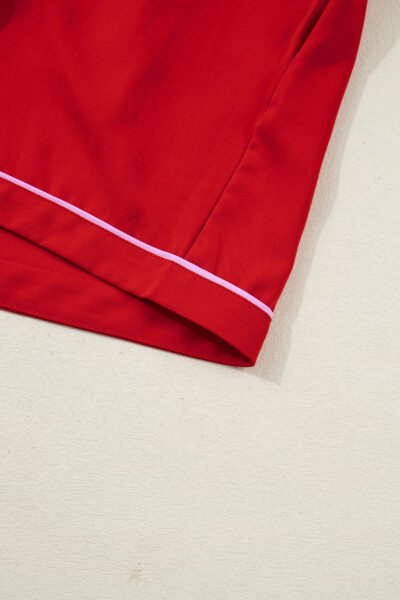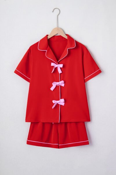Fiery Red Contrast Trim Ribbon Bow Short Silky 2pcs Pajama Set