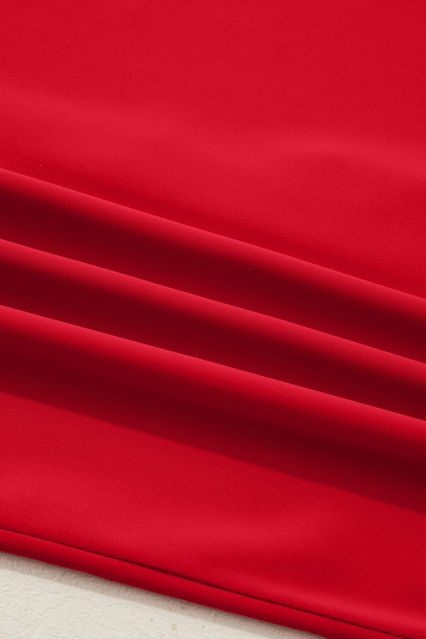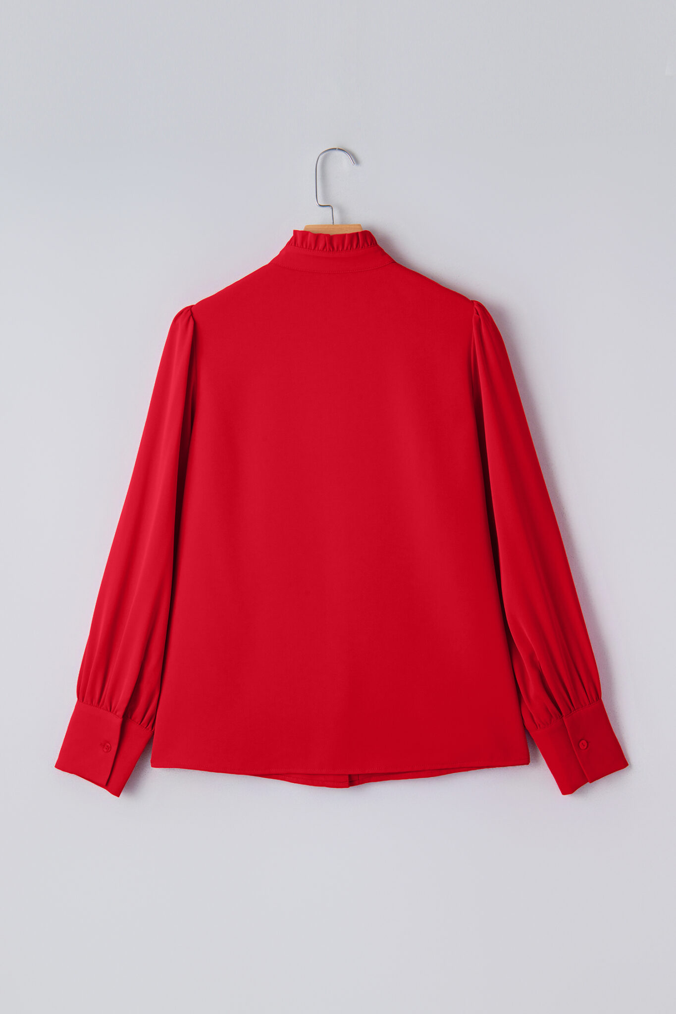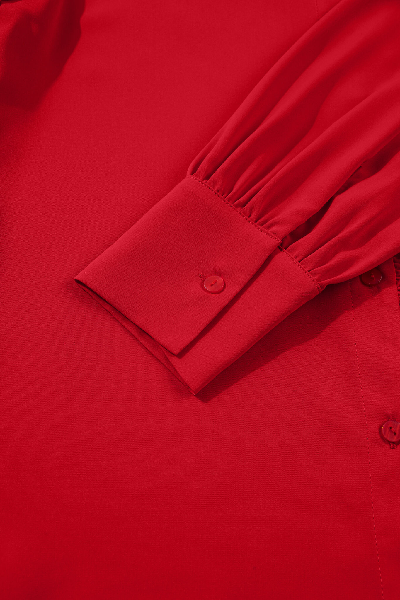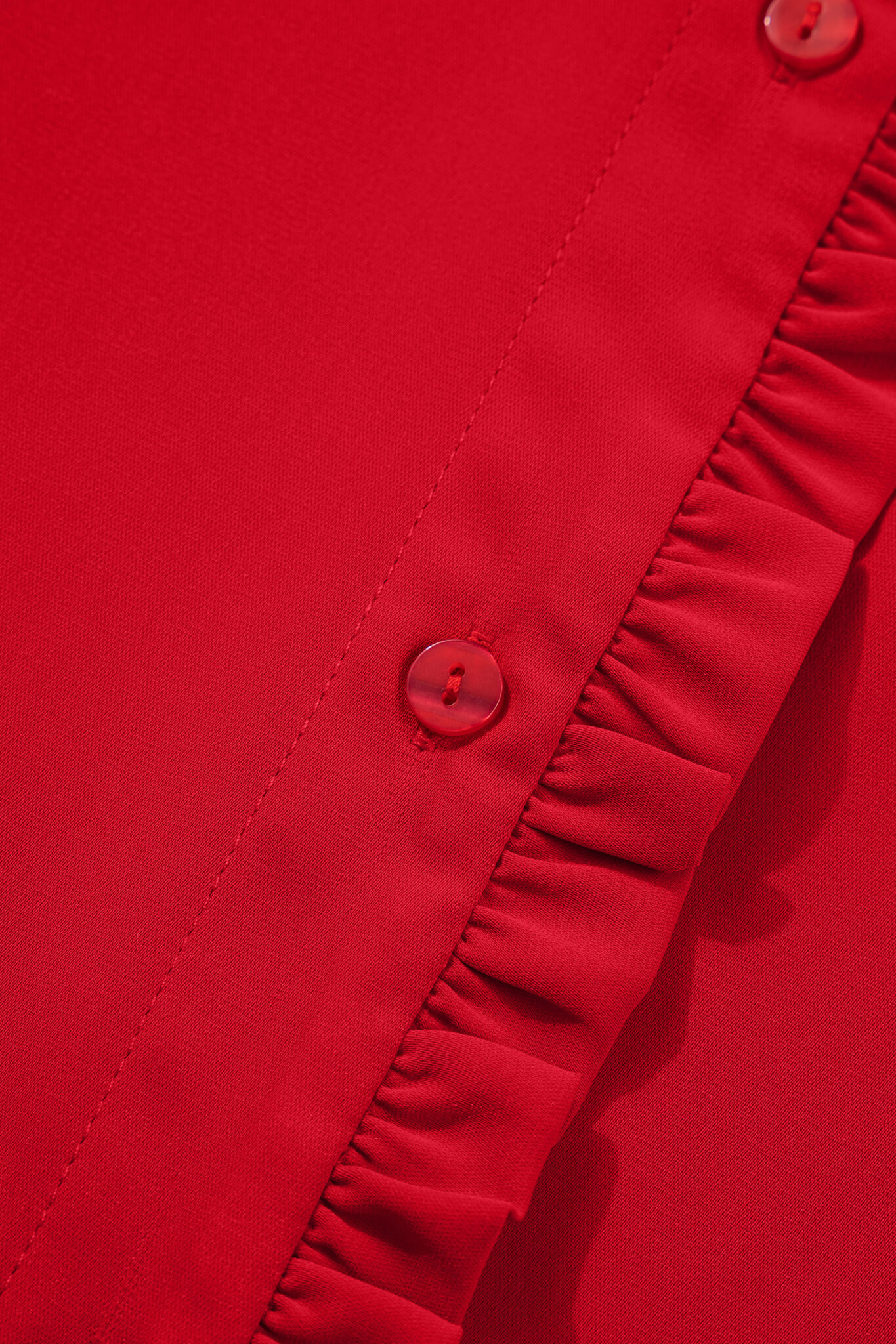 Fiery Red Frilled Trim Button Up Pleated Long Sleeve Shirt