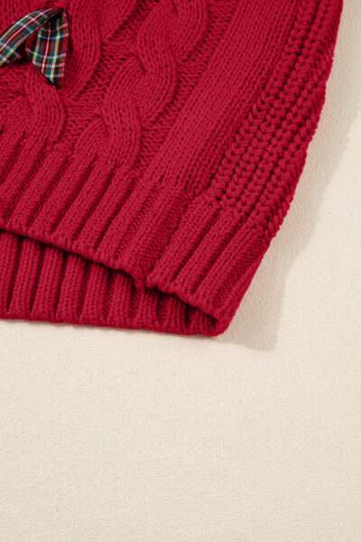 Fiery Red Plaid Lace up Detail Christmas Holiday Puff Short Sleeve Sweater