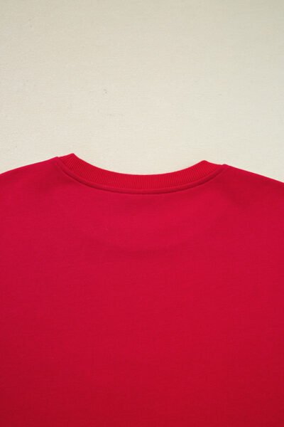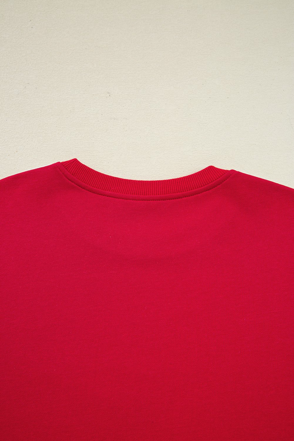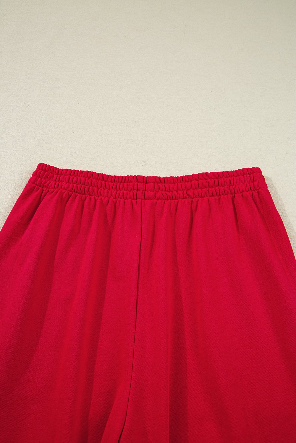 Fiery Red Varsity Striped Detail Crewneck Pullover Elastic Sweatpants 2pcs Outfit