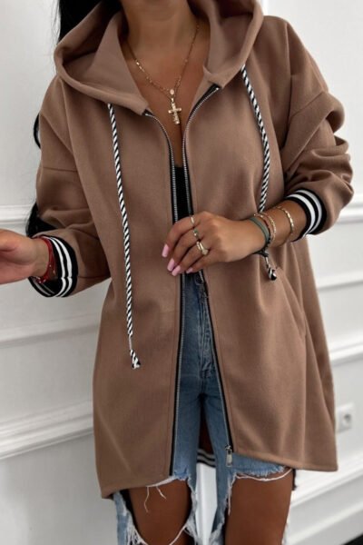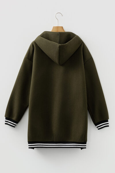 Four Leaf Clover Contrast Cuffed Drop Shoulder Zip up Tunic Hoodie