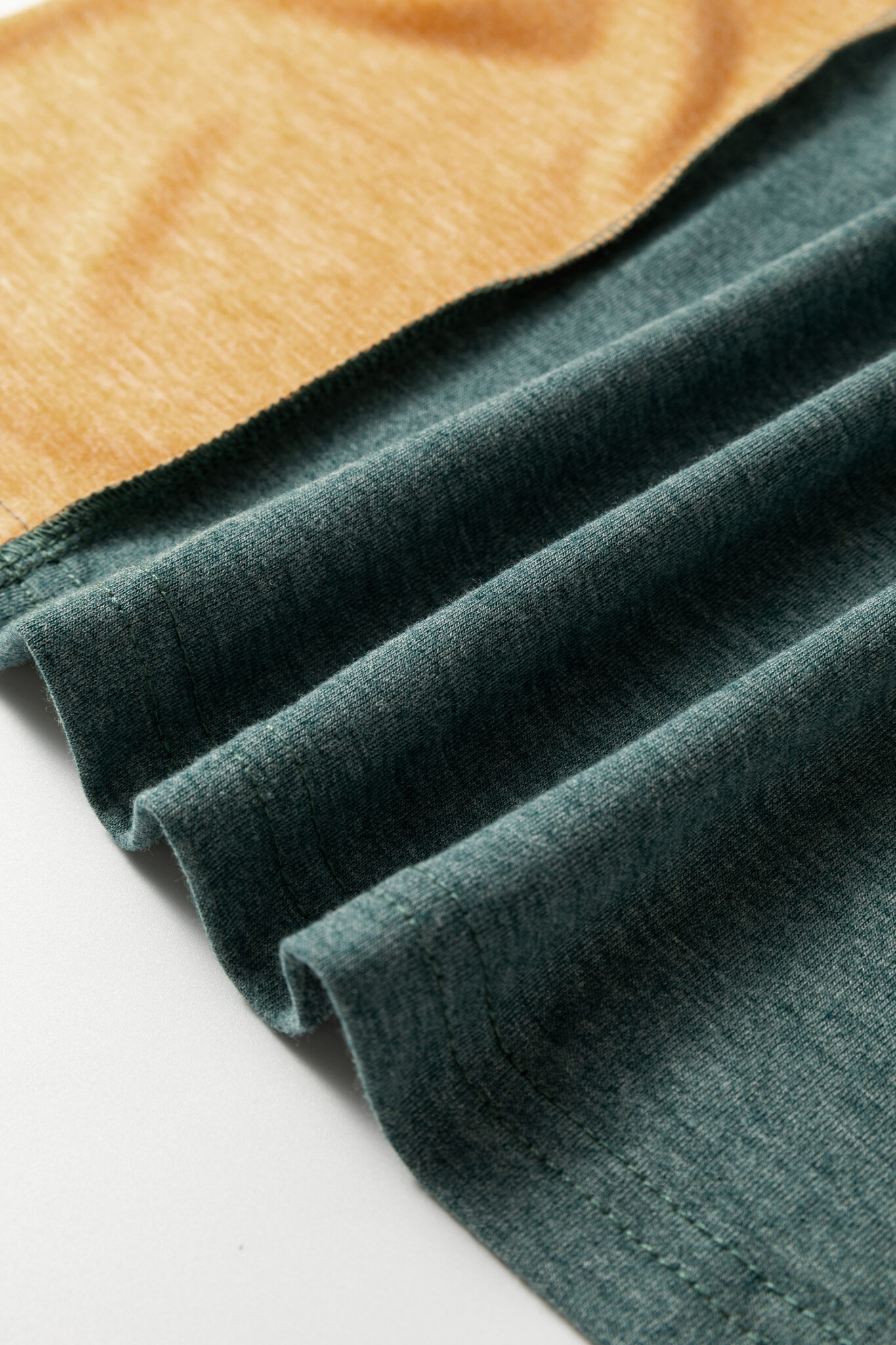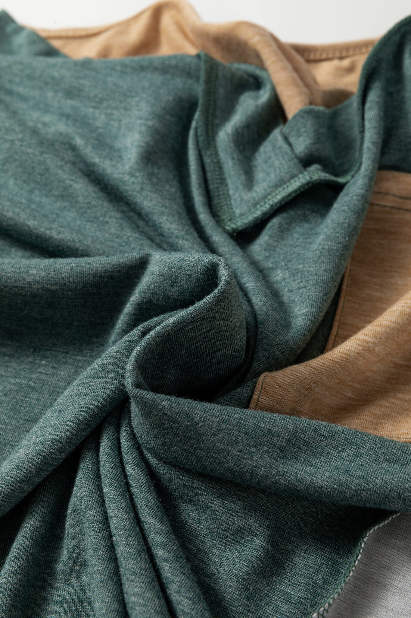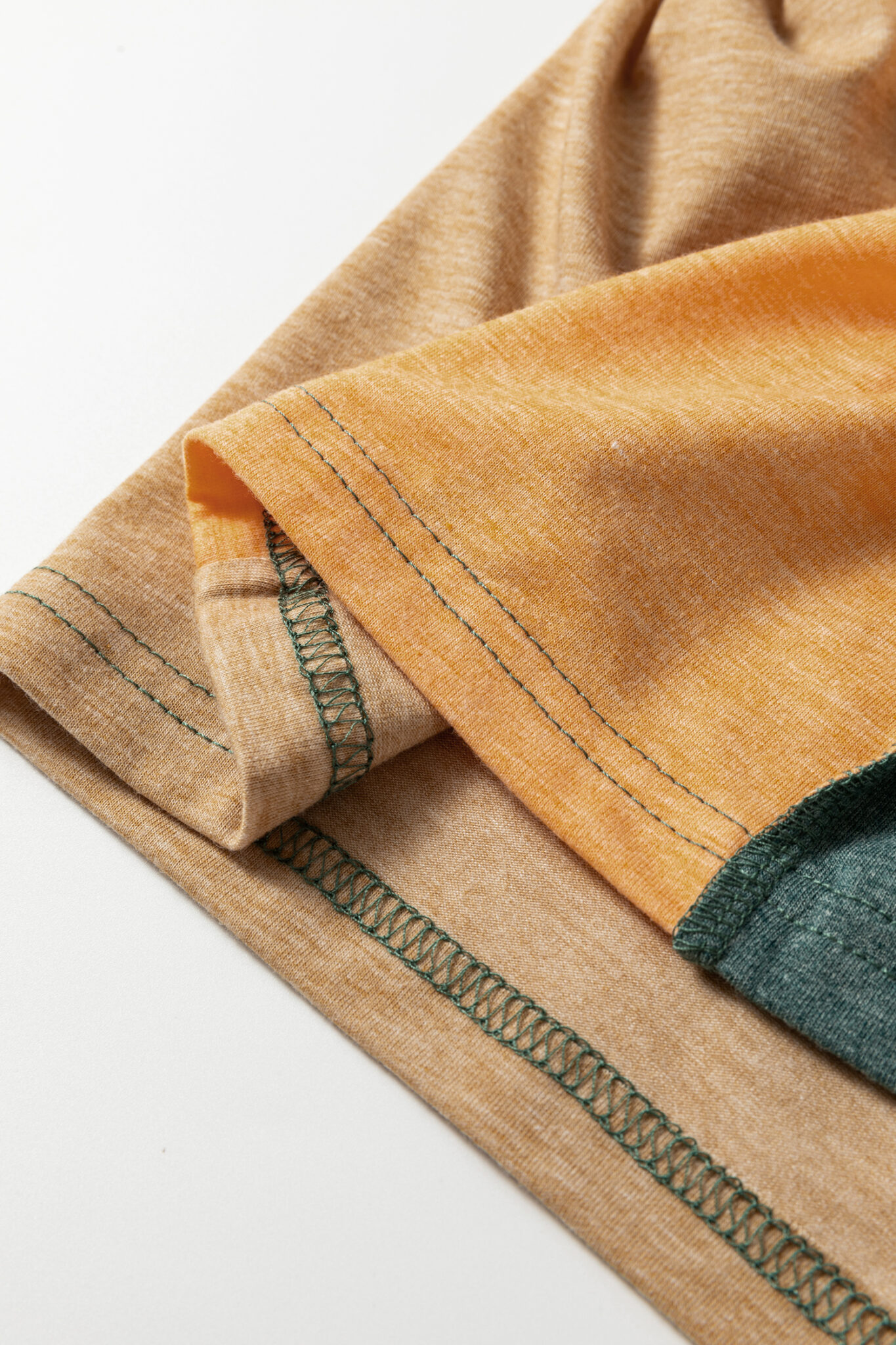 Four Leaf Clover Exposed Stitching Colorblock V Neck Long Sleeve Top