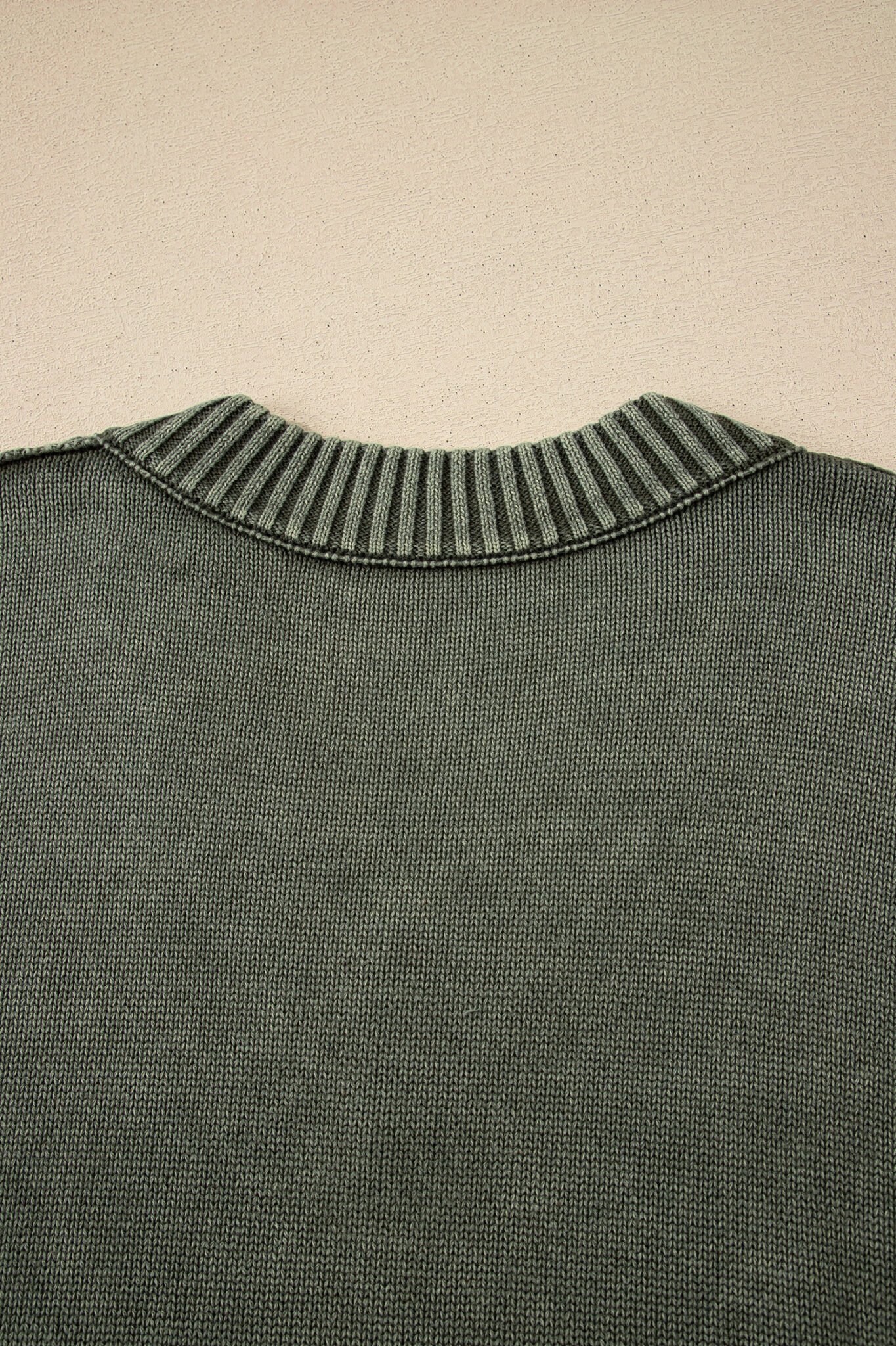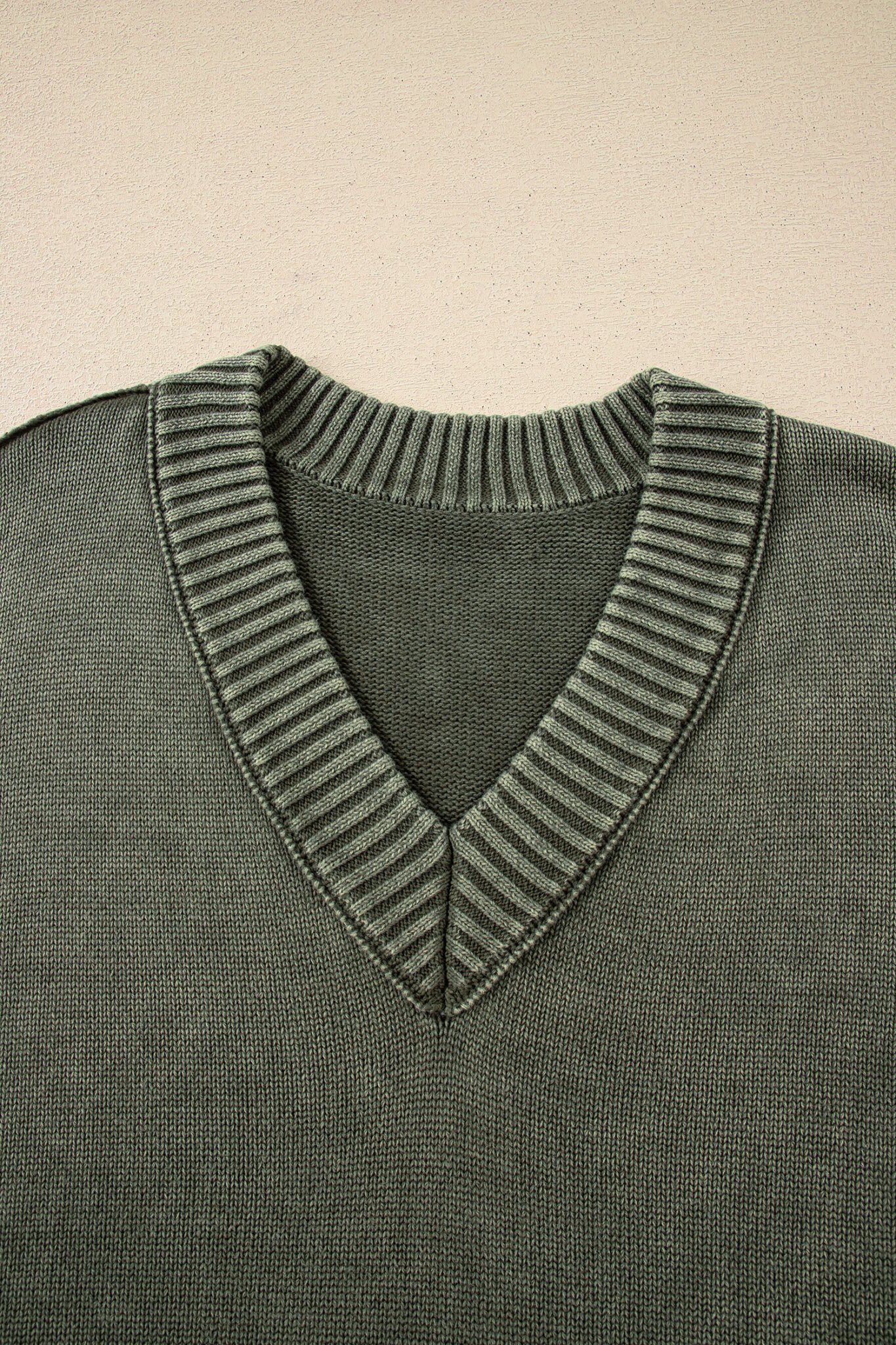 Four Leaf Clover Mineral Wash V Neck Knit Exposed Seam Drop Shoulder Loose Sweater